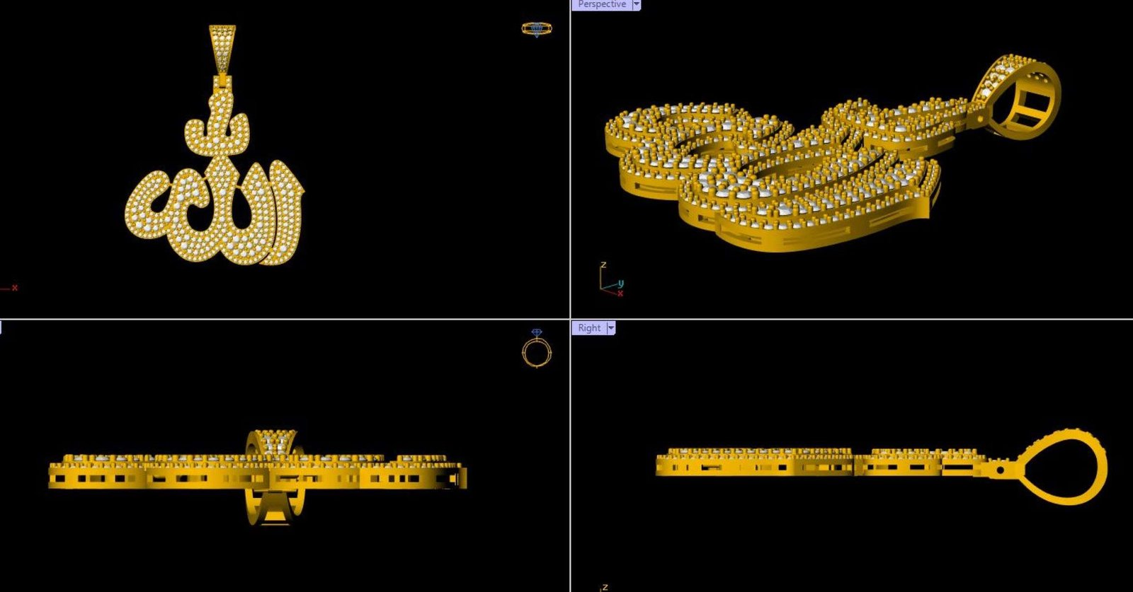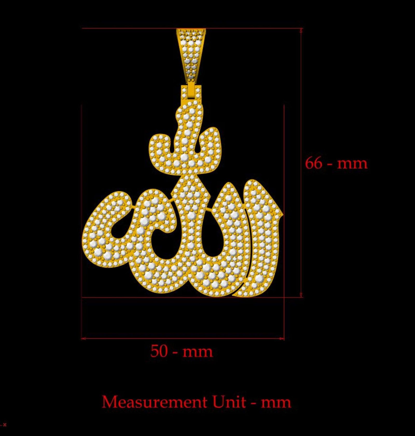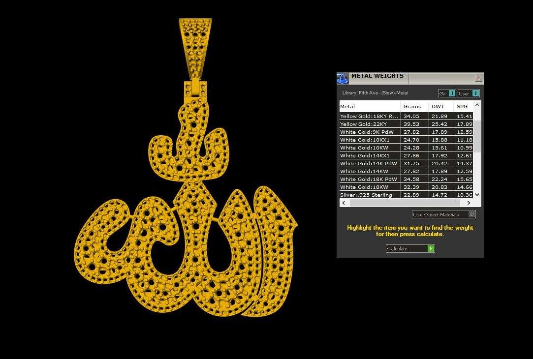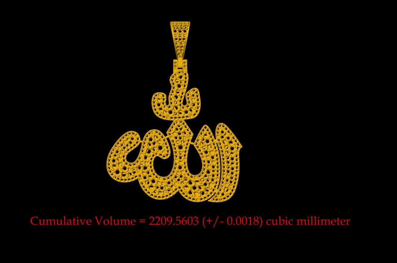 This is a jewelry CAD file, 3Dprint file, stl file. For jewelry CAM and casting. Model name is :- ”Allah Islamic Diamond Pendant - 0065 “. For jewelry manufacturing company or other 3D printing ornaments manufacturing company.