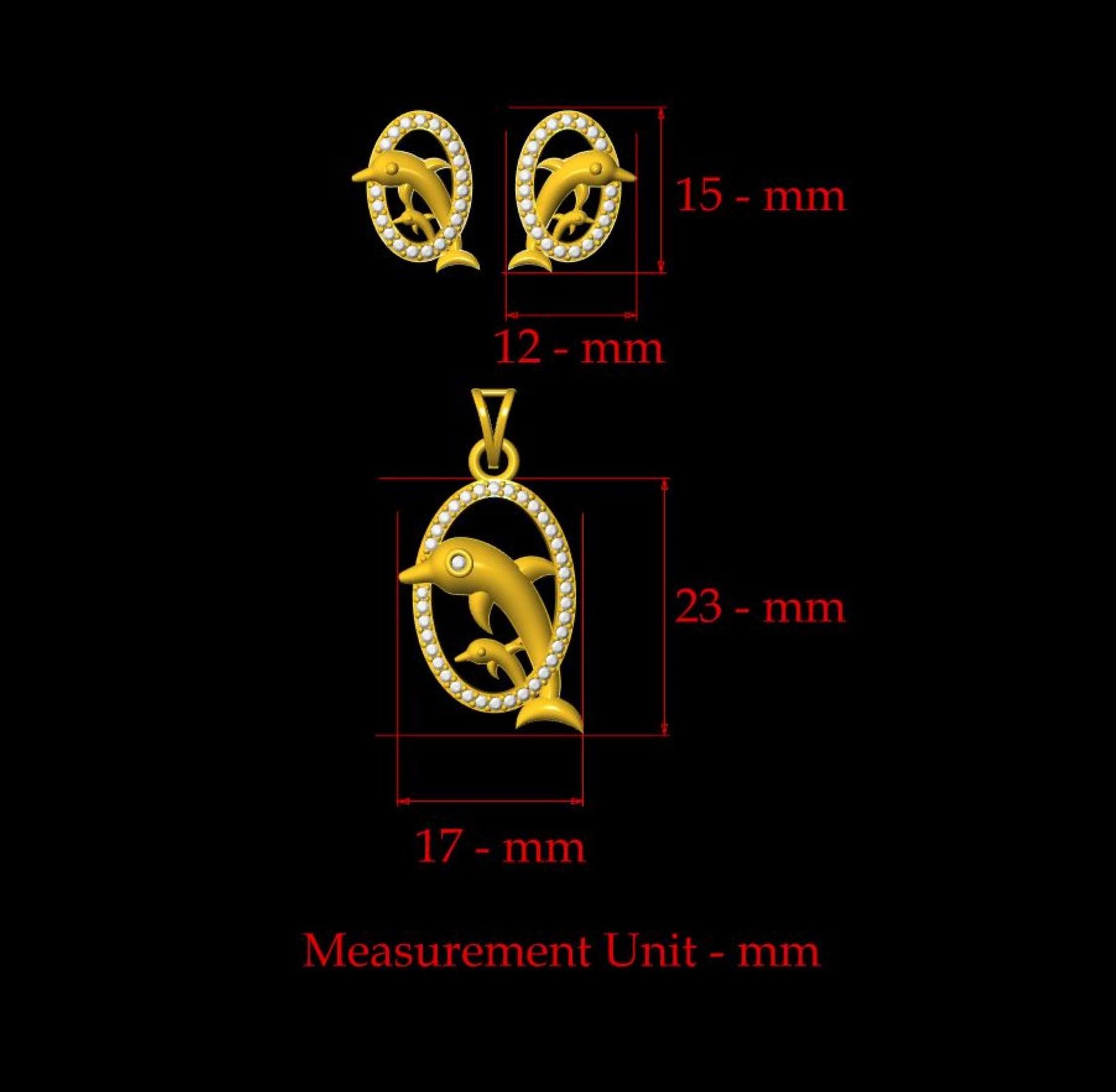 This is a jewelry 3d print file. For jewelry CAM and metal casting. It is ready for CAM and 3d printing. Model name is”Diamond Dolphin Pendant Set - 0035”.We have “Diamond Dolphin Pendant Set - 0035” Earring length 15 mm, width 12 mm and Pendant length 23 mm, width 17 mm .You can find all details of the product and volume of the product in the image. You can easily calculate any metal weight by product volume. We have given STL, OBJ, 3DMSTL, file format in ZIP file. (After metal casting and filling, and before polishing please tell your precutter or stone setter or engraver to clean or deep fece area, cloth and other area of upper portion by jewelry-graintool or grainbar or other tools for better finishing).We give you (normal STL, and OBJ) file format in zip file.