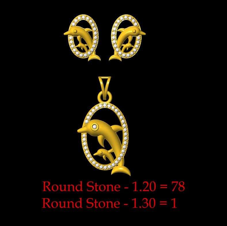 This is a jewelry 3d print file. For jewelry CAM and metal casting. It is ready for CAM and 3d printing. Model name is”Diamond Dolphin Pendant Set - 0035”.