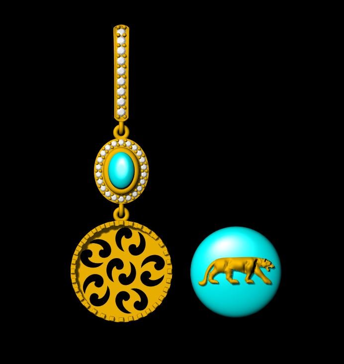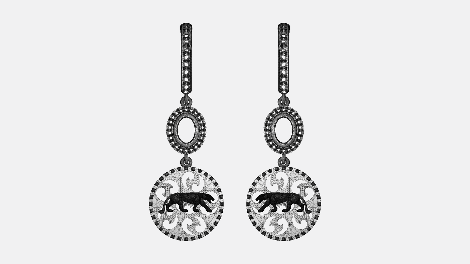 This is a jewelry 3d print file. For jewelry CAM and metal casting. Model name is :- ”Diamond Tiger Earring - 04”.