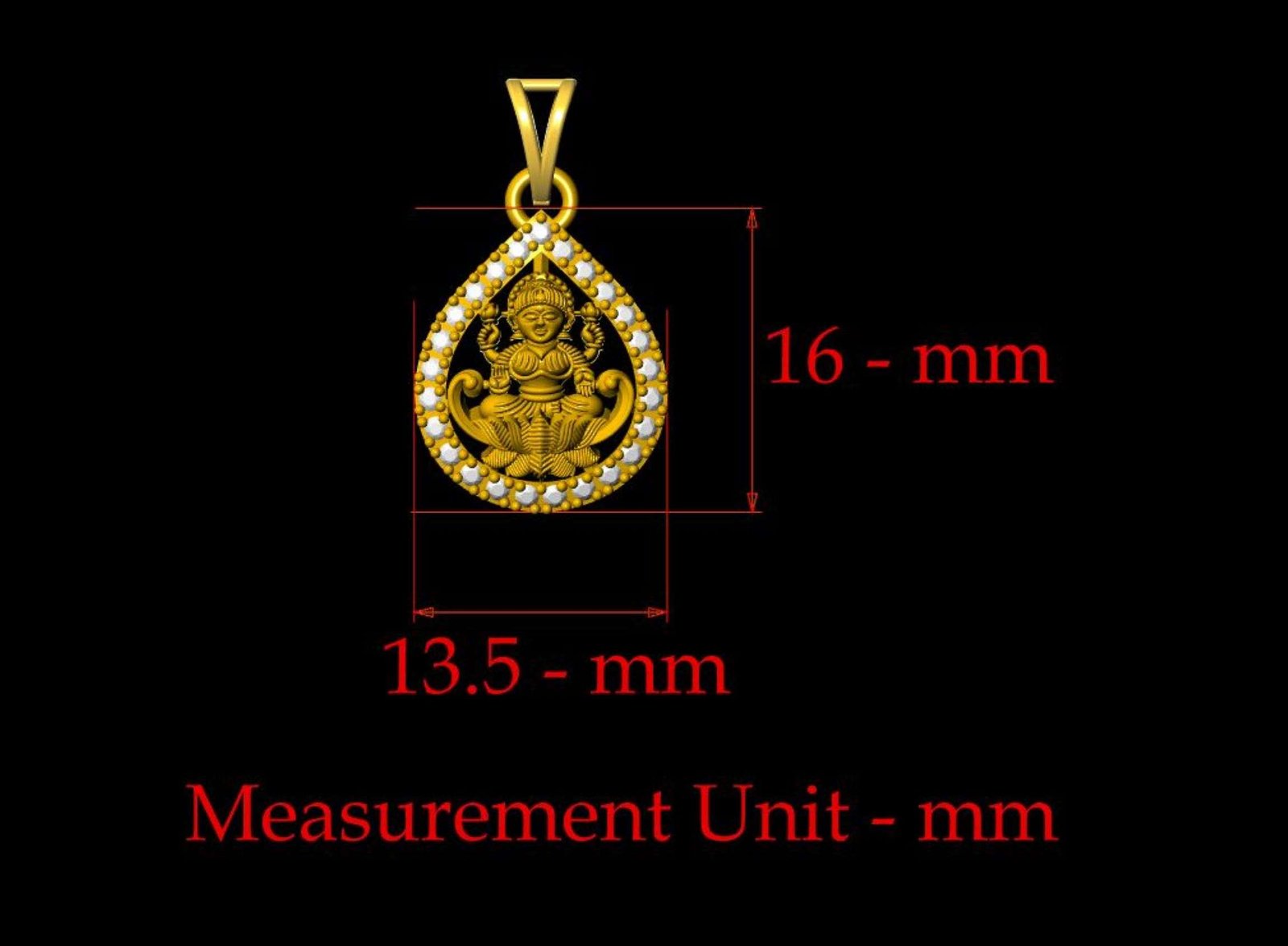 This is a jewelry 3d print file. For jewelry CAM and metal casting. Model name is ”Drop Laxmi Pendant - 0054”.Lakshmi is the consort of the god Vishnu. Lakṣmi, is one of the principal goddesses in Hinduism.