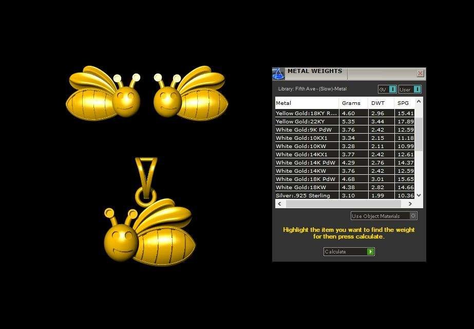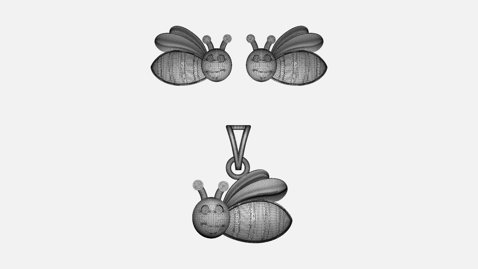 This is a jewelry 3d print file. For jewelry CAM and metal casting. This is a jewelry 3d print file. Model name is ”Honey Bee 3dm File - 0027”. And this file is ready for jewelry CAM and all type of 3Dprint. This is unique design. We have ”Honey Bee 3dm File - 0027” this file has 2 pieces earrings and 1 piece pendant. These Earring length 10 mm, width 13 mm and Pendant length 12 mm, width 16 mm. These pendant set are suitable for any occasion. This is ready for jewelry CAM and metal casting and any type of 3D-printing purpose. You can find all details of the product and volume of the product in the image. You can easily calculate any metal weight by product volume. We have given STL, OBJ, 3DMSTL, file format in ZIP file. ( After metal casting and filling, and before polishing please tell your precutter or stone setter or engraver to clean or deep fece area, cloth and other area of upper portion by jewelry-graintool or grainbar or other tools for better finishing). We give you (normal STL, and OBJ) file format in ZIP file.