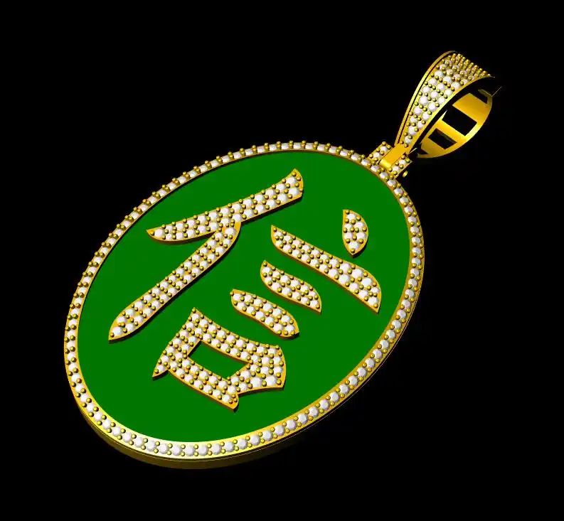 This is a jewelry 3d print file. For jewelry CAM and metal casting. It is ready for CAM and 3d printing. Model name is ”Islamic Pendant - 0075“.For jewelry manufacturing company or other 3D printing ornaments manufacturing company. Embrace faith and beauty with our Arabic word Allah pendant 3D printable model, meticulously designed to reflect spiritual devotion and cultural significance. This pendant features the elegant Arabic calligraphy of (Allah), symbolizing the monotheistic concept of God in Islam. Perfect for those seeking to express their faith or cultural heritage, this model combines intricate craftsmanship with modern technology. Whether you're a believer, collector, or admirer of Arabic artistry, this pendant promises to be a meaningful and cherished accessory. You can easily calculate any metal weight by product volume. (After metal casting and filling, and before polishing please tell your pre cutter or stone setter or engraver to clean or deep face area, cloth and other area of upper portion by jewelry-grain tool or grain bar or other tools for better finishing). This file is ready for jewelry CAM and any type of 3D-printing. You can find all details of the product and volume of the product in the image. We give you (normal STL, and OBJ,3DMSTL) file format in zip file.