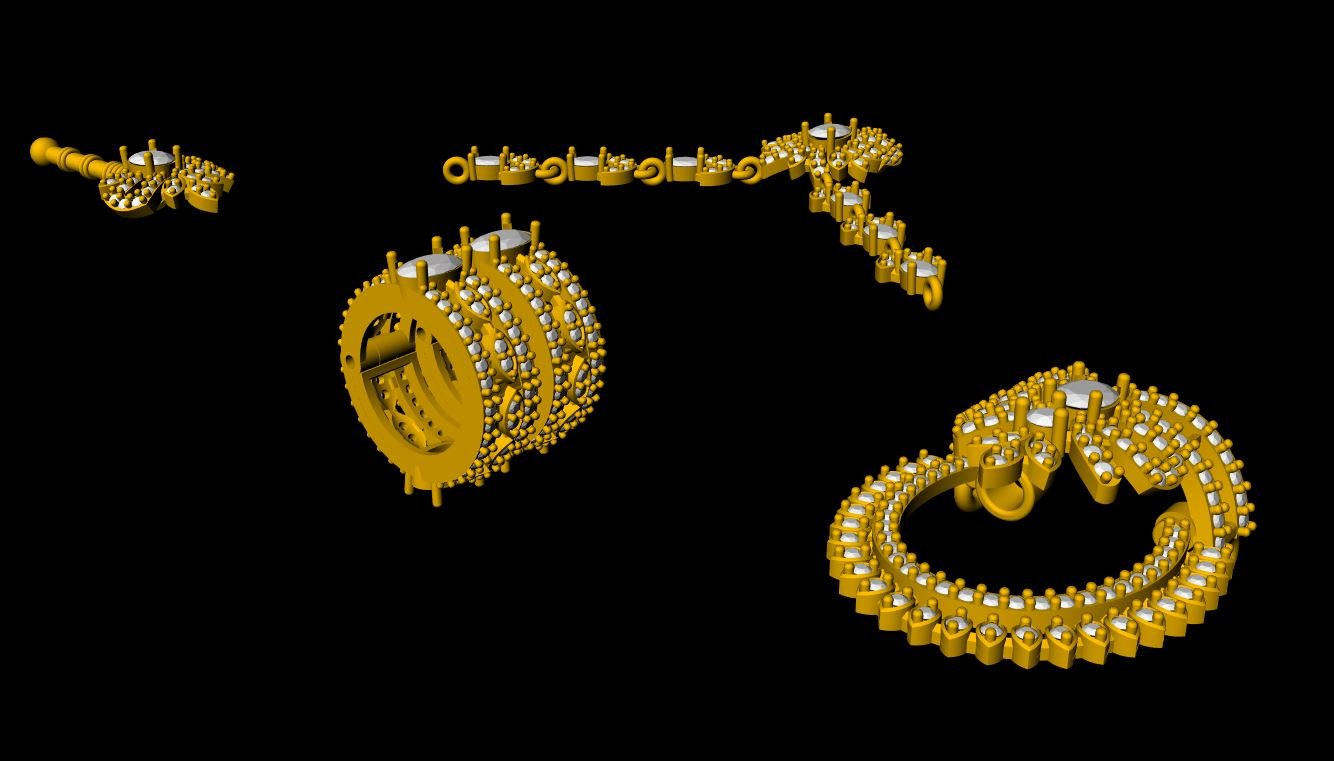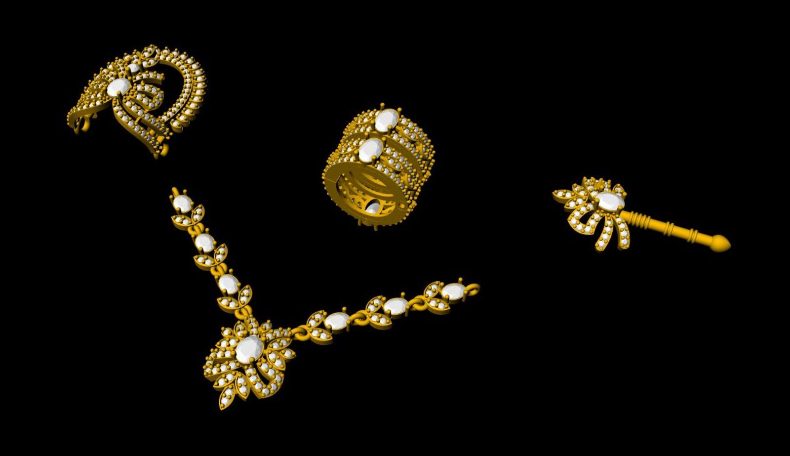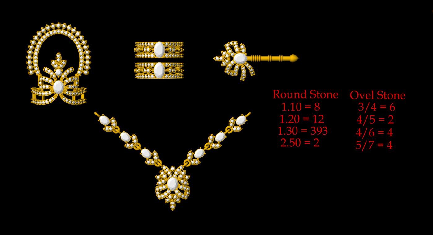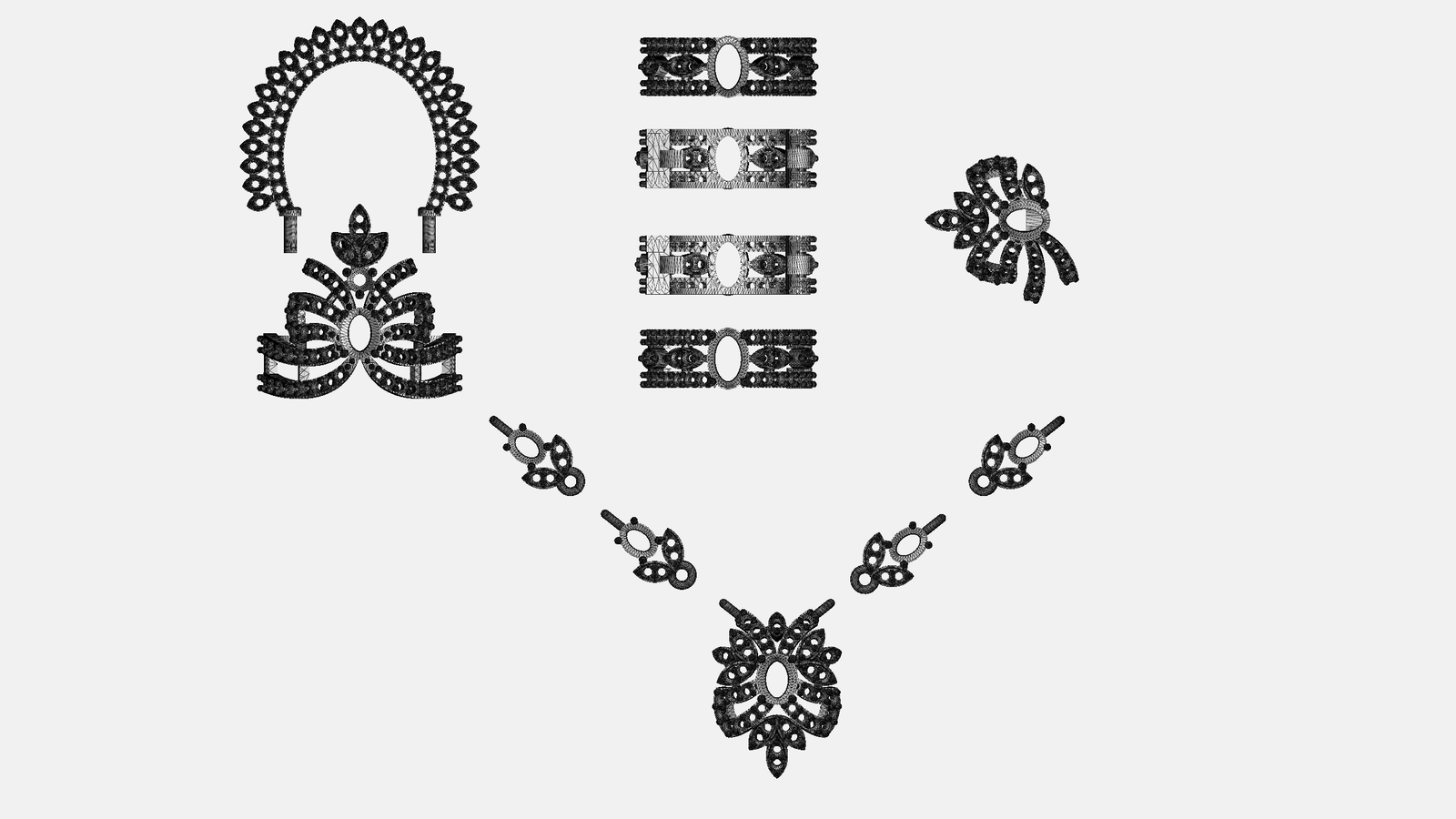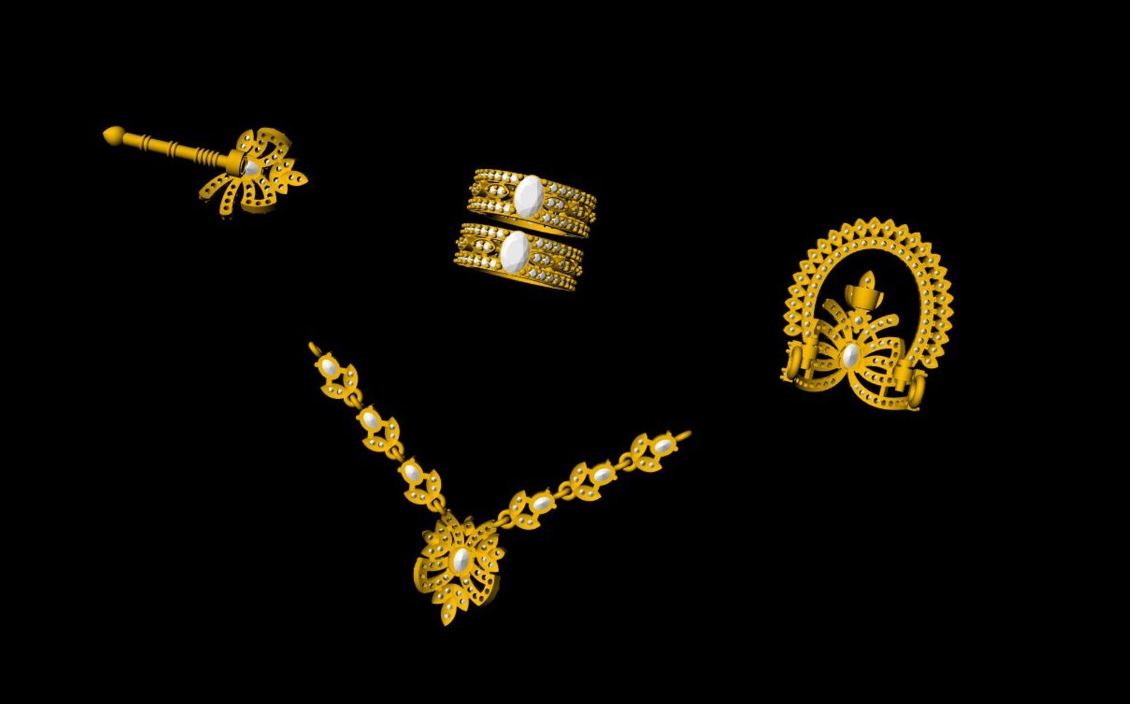 This is a jewelry CAD file or 3dprint file or stl file. For jewelry CAM and casting. Model name is - ”Krishna Shringar Combo Set - 02“.