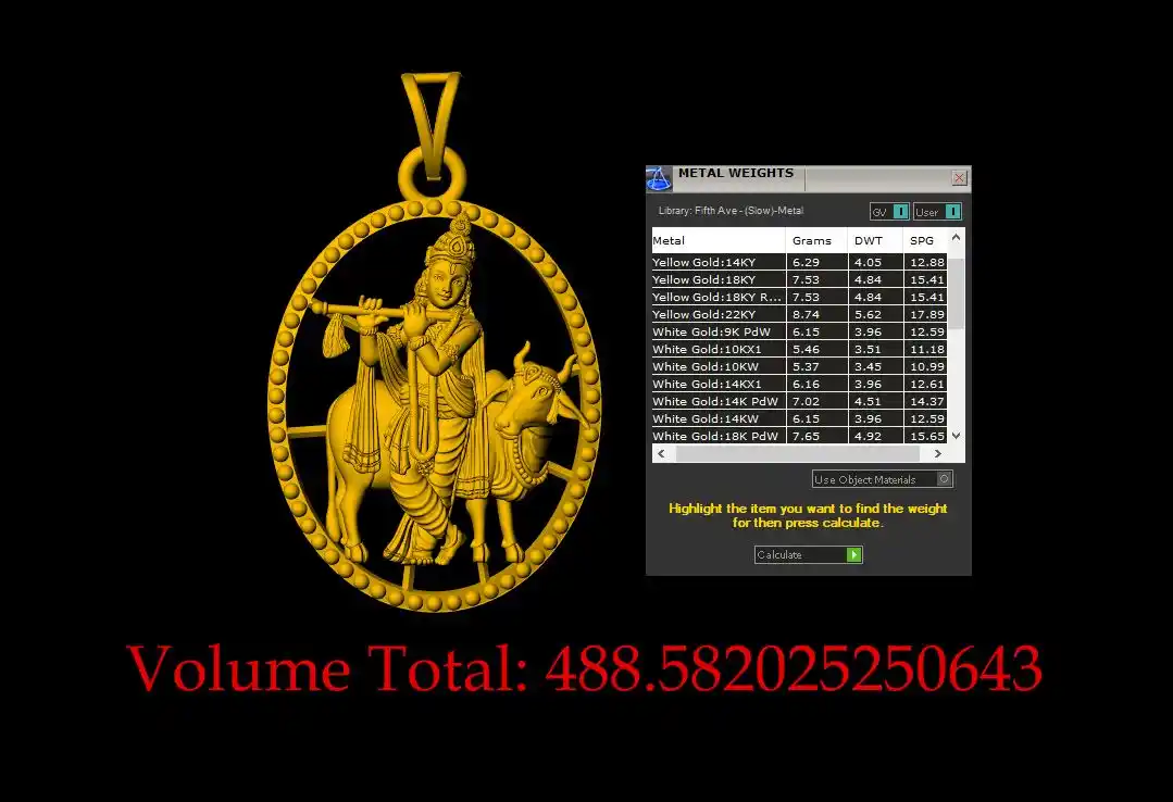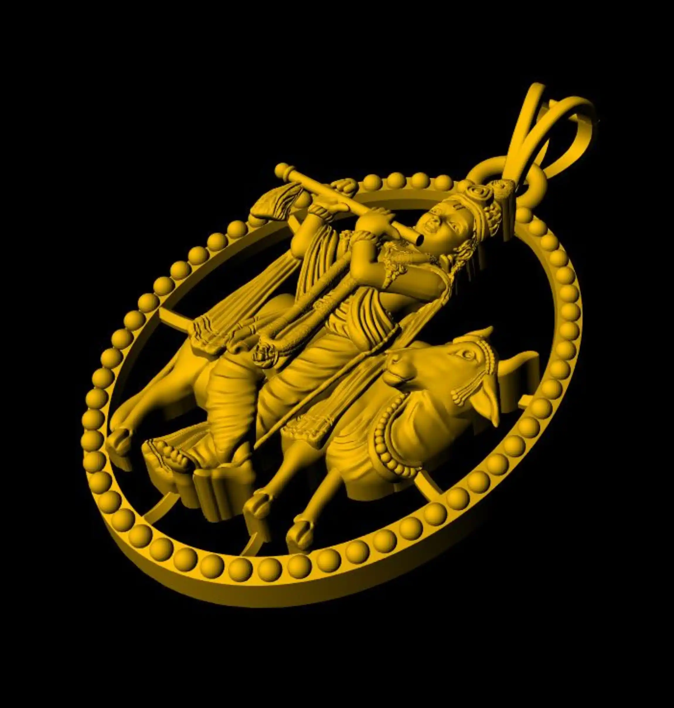 This is a jewelry 3d print file. For jewelry CAM and metal casting. It is ready for CAM and 3d printing. Model name is ”Lord Krishna Pendant - 0091“.