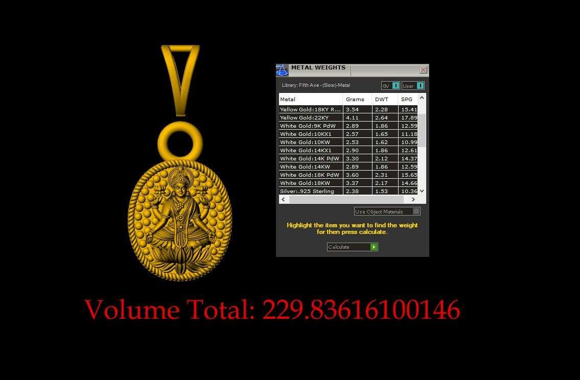 This is a jewelry 3d print file. For jewelry CAM and metal casting. Model name is ”Lucky Lakshmi Pendant - 0060”.Lakshmi is the consort of the god Vishnu.