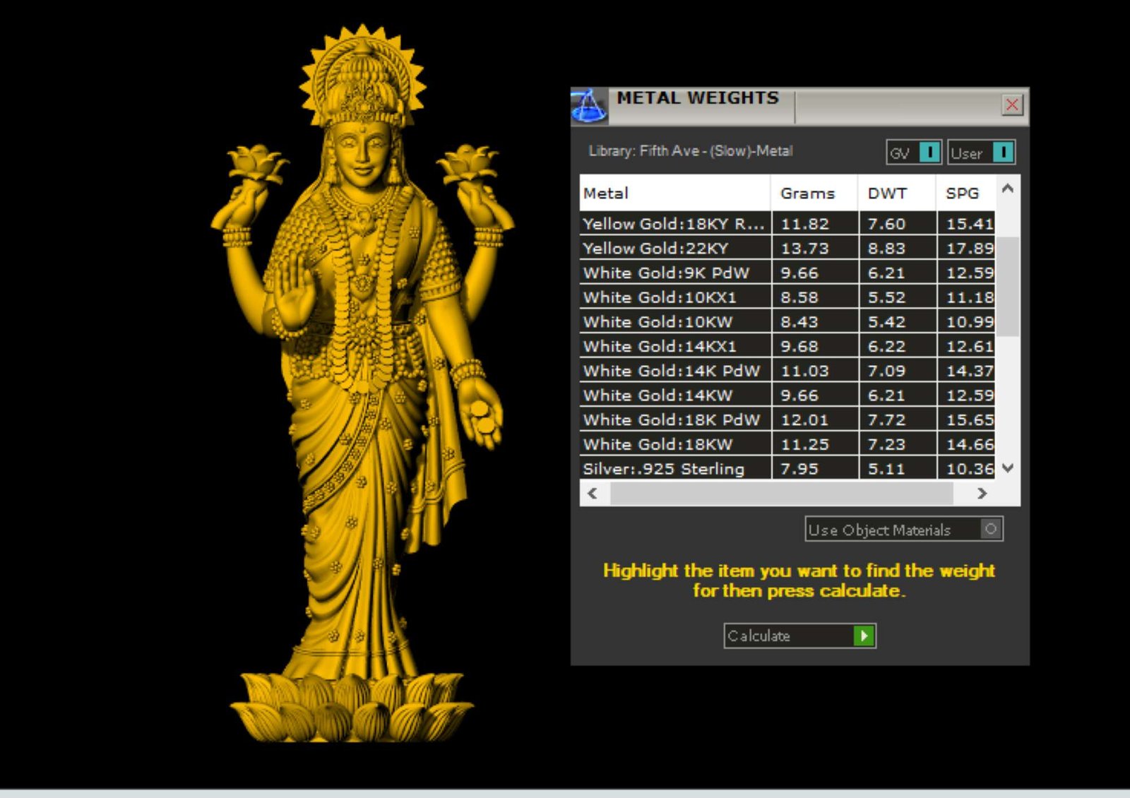 This is a jewelry 3d print file. For jewelry CAM and metal casting. Model name is ”Maha Laxmi Murti - 0018”.