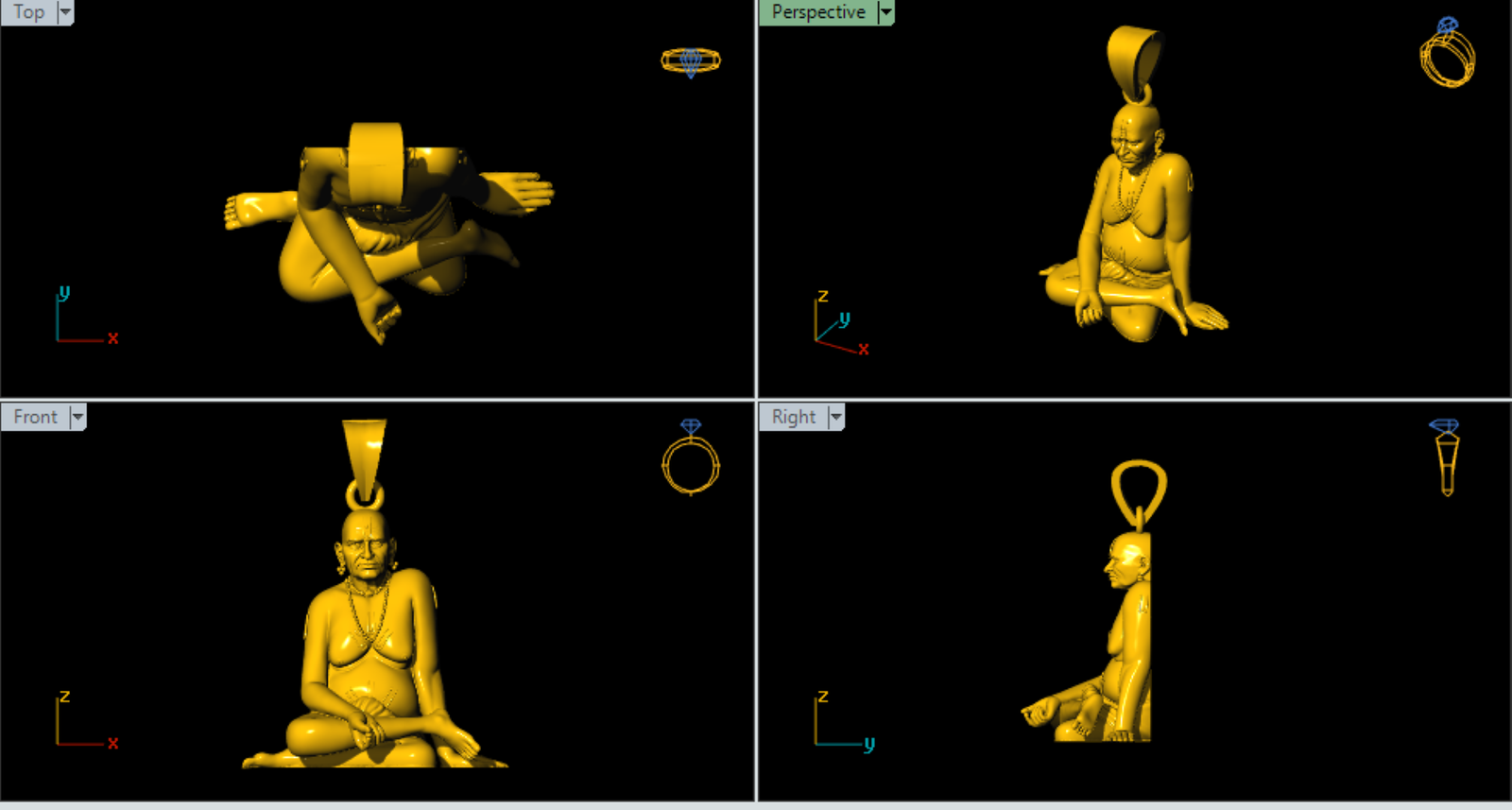 This is a jewelry 3d print file. For jewelry CAM and metal casting. It is ready for CAM and 3D printing. Model name is ” Swami Samarth Pendant – 0011”. It is an Indian God.