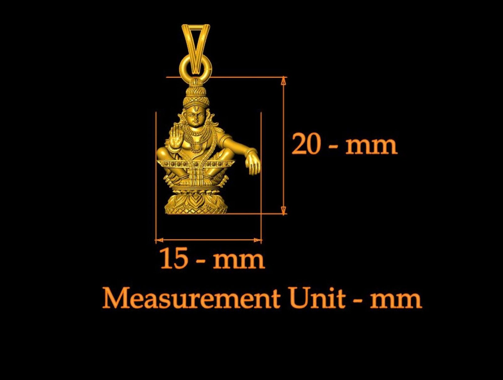 This is a jewelry 3dprint CAD file, STL file. For jewelry CAM and casting. And this file is ready for any type of 3Dprinting. Model name is ”Balaji 3d Print File - 0051".Lord Balaji is another name for the Hindu deity Lord Venkateswara, an incarnation of Lord Vishnu who is believed to have descended to Earth to protect humanity during the Kaliyuga. His main abode is the Tirumala VenkateswaraTemple in Andhra Pradesh,India. We have ”Balaji 3d Print File - 0051" length 20- mm, width 15-mm and thickness 6- mm. We can use this model as a Jewelry Pendant, Necklace center piece, Earrings, Rings center piece, Showpiece or other purpose .This ”Balaji 3d Print File - 0051" is ready for jewelry CAM and any type of 3D-printing. You can find all details of the product and volume of the product in the image. You can easily calculate any metal weight by product volume. We have given STL, OBJ, 3DMSTL file format in ZIP file. (After metal casting and filling, and before polishing please tell your pre cutter or stone setter or engraver to clean or deep fece area, cloth and other area of upper portion by jewelry-grain tool or grain bar or other tools for better finishing).I give you (STL, 3DMSTL and OBJ) file format in ZIP file.