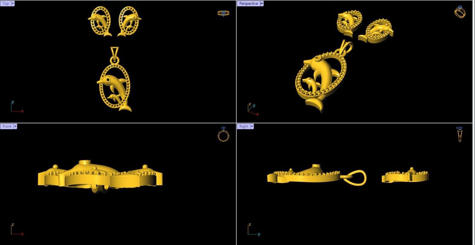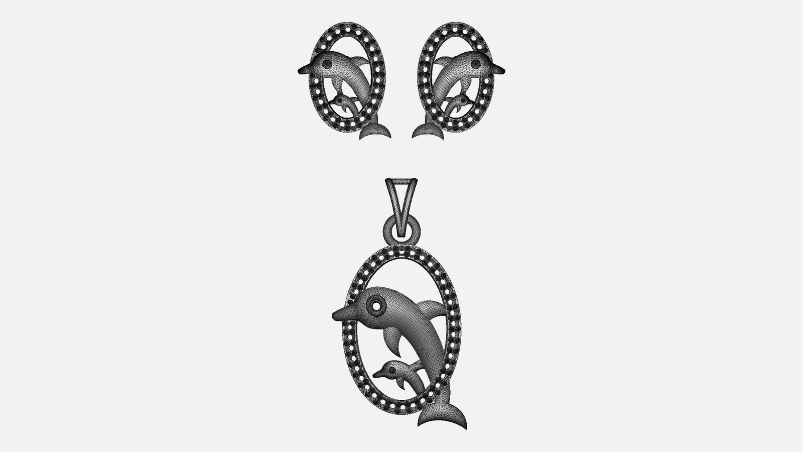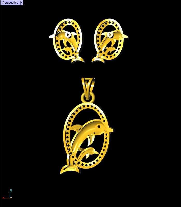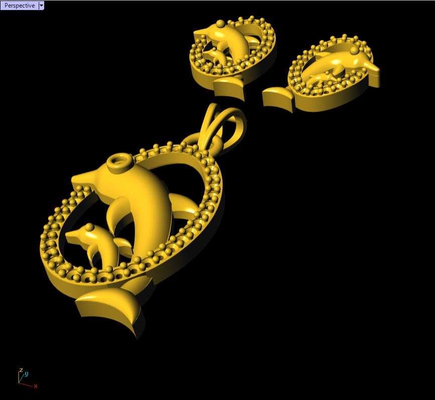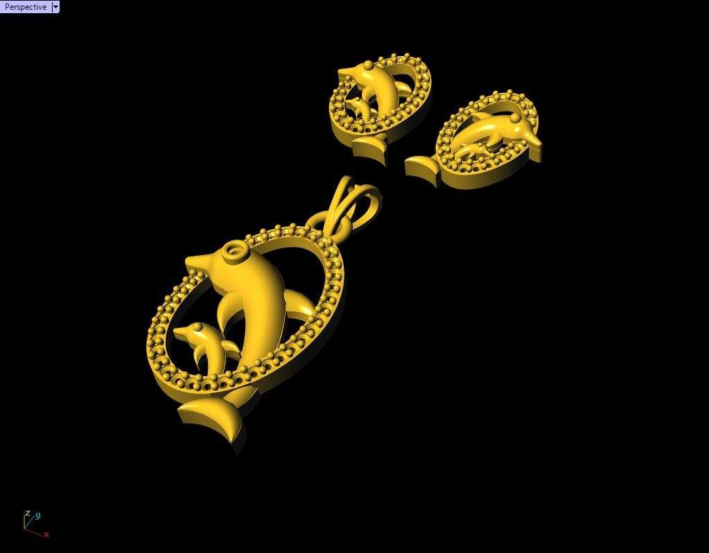 This is a jewelry 3d print file. For jewelry CAM and metal casting. It is ready for CAM and 3d printing. Model name is”Diamond Dolphin Pendant Set - 0035”.