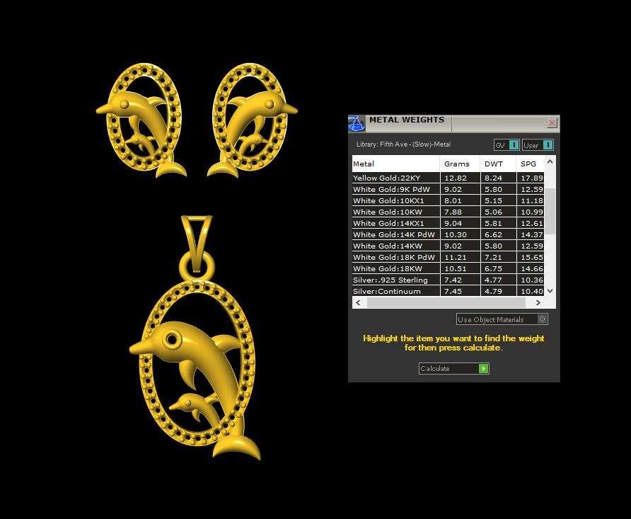 This is a jewelry 3d print file. For jewelry CAM and metal casting. It is ready for CAM and 3d printing. Model name is”Diamond Dolphin Pendant Set - 0035”.We have “Diamond Dolphin Pendant Set - 0035” Earring length 15 mm, width 12 mm and Pendant length 23 mm, width 17 mm .You can find all details of the product and volume of the product in the image. You can easily calculate any metal weight by product volume. We have given STL, OBJ, 3DMSTL, file format in ZIP file. (After metal casting and filling, and before polishing please tell your precutter or stone setter or engraver to clean or deep fece area, cloth and other area of upper portion by jewelry-graintool or grainbar or other tools for better finishing).We give you (normal STL, and OBJ) file format in zip file.