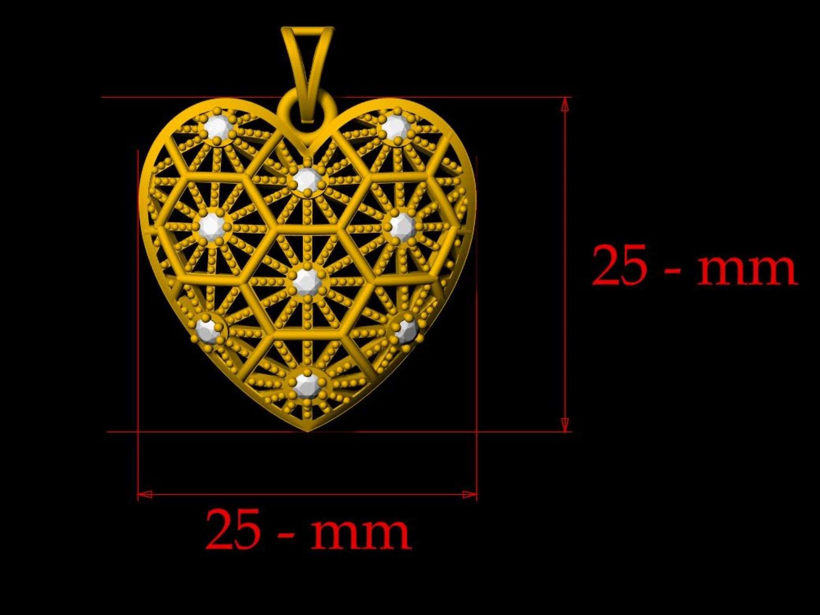 Tags: gold, diamond, silver, jewellery, pendant STL file, heart pendant,