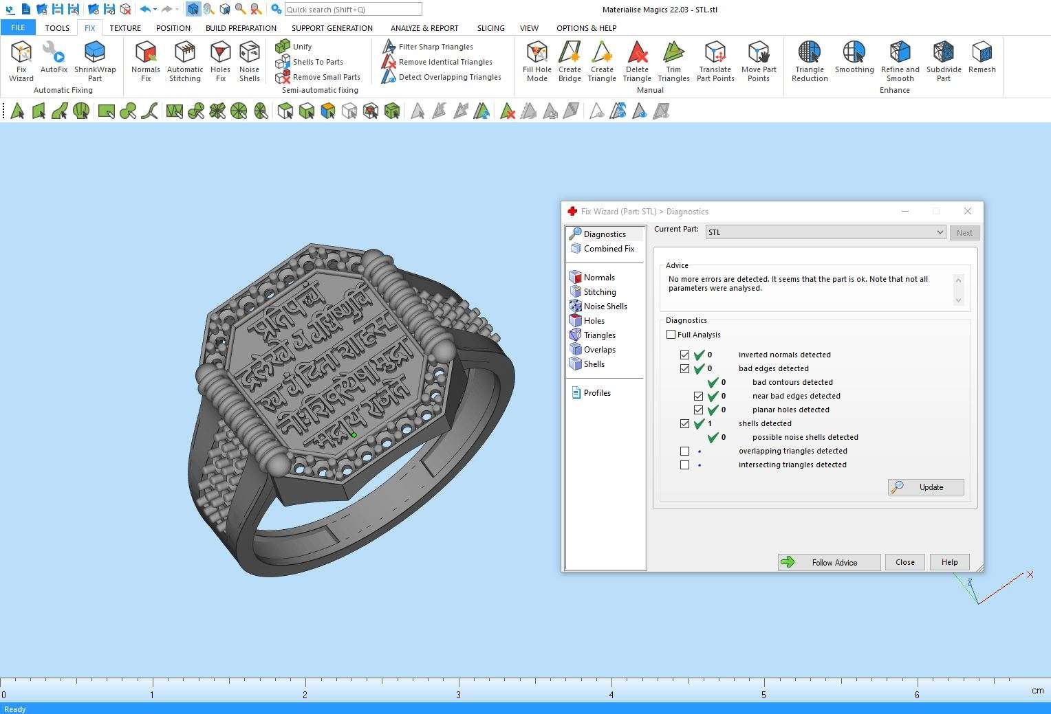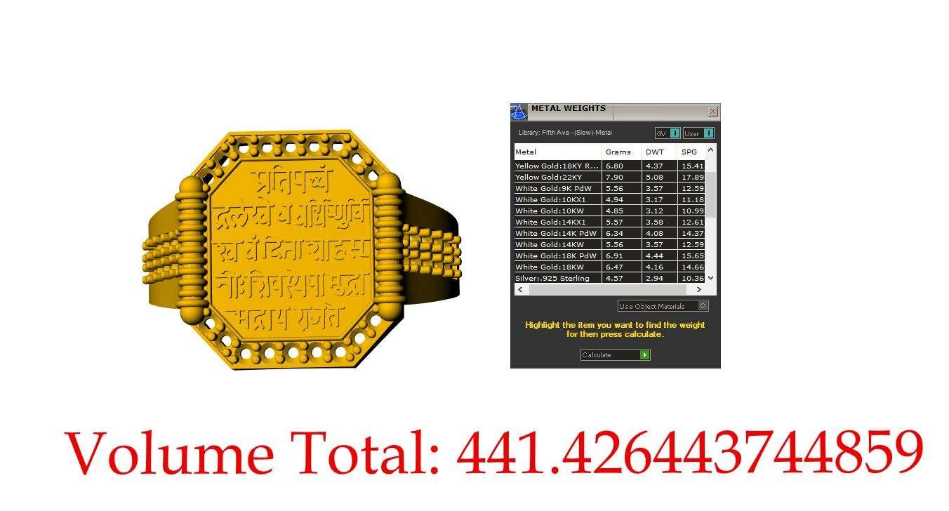 This is a jewelry 3d print file. For jewelry CAM and metal casting. This is a jewelry 3d print file. Model name is ”Diamond Rajmudra Ring - 0011”. And this file is ready for jewelry CAM and all type of 3Dprint.This is ready for jewelry CAM and metal casting and any type of 3D-printing purpose. You can find all details of the product and volume of the product in the image. You can easily calculate any metal weight by product volume. We have given STL, OBJ, 3DMSTL, file format in ZIP file. (After metal casting and filling, and before polishing please tell your pre cutter or stone setter or engraver to clean or deep fece area, cloth and other area of upper portion by jewelry-grain tool or grain bar or other tools for better finishing). We give you (normal STL, and OBJ) file format in ZIP file.