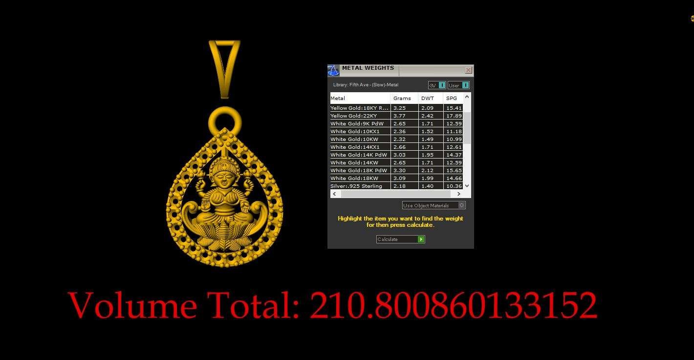 This is a jewelry 3d print file. For jewelry CAM and metal casting. Model name is ”Drop Laxmi Pendant - 0054”.Lakshmi is the consort of the god Vishnu. Lakṣmi, is one of the principal goddesses in Hinduism.