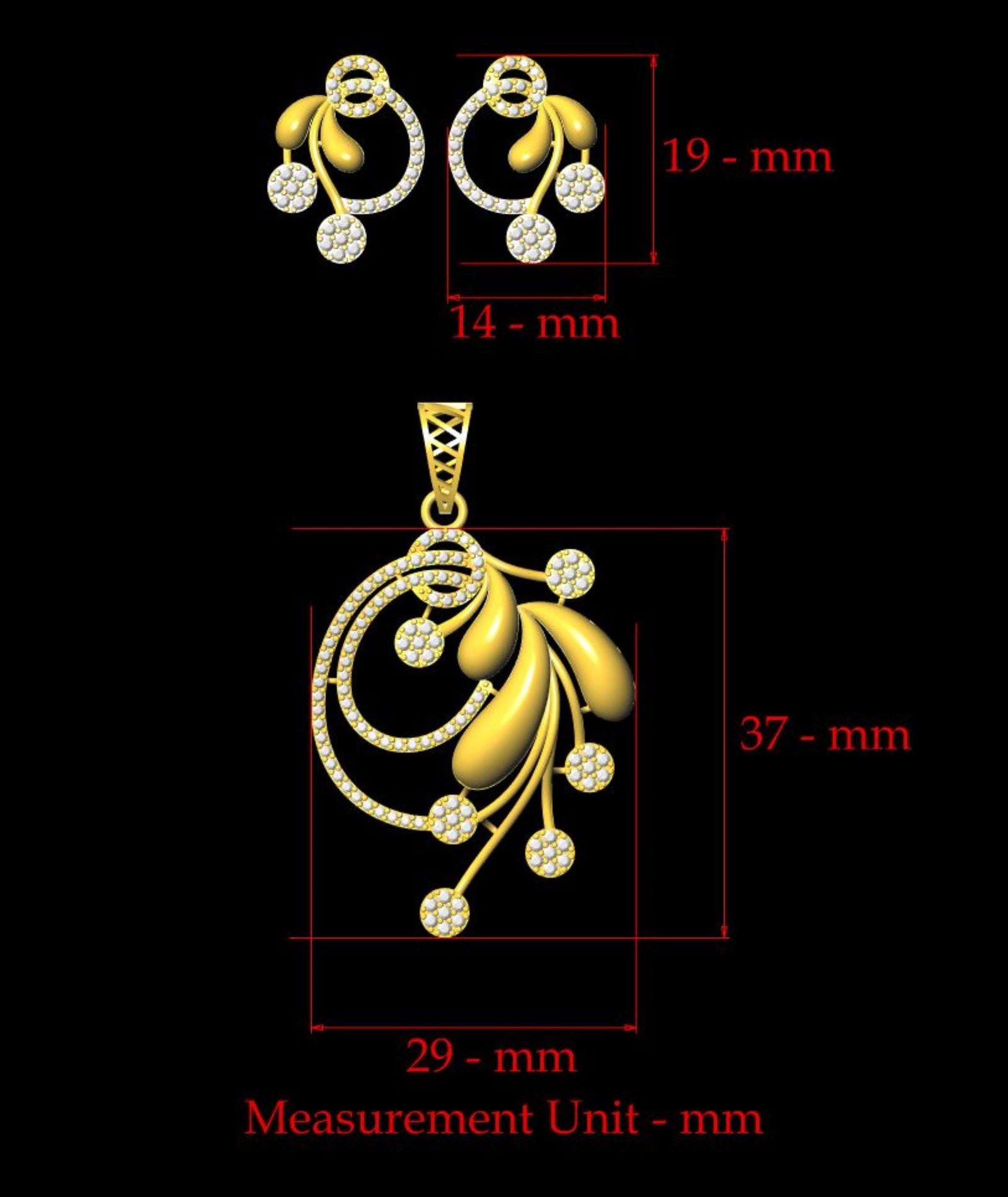 This is a jewelry 3d print file. For jewelry CAM and metal casting. It is ready for CAM and 3d printing. Model name is”Fancy Pendant Set - 0029”.We have “Fancy Pendant Set - 0029” Earring length 19 mm, thickness 14 mm and Pendant length 37 mm, thickness 29 mm .You can find all details of the product and volume of the product in the image. You can easily calculate any metal weight by product volume. We have given STL, OBJ, 3DMSTL, file format in ZIP file. (After metal casting and filling, and before polishing please tell your precutter or stone setter or engraver to clean or deep fece area, cloth and other area of upper portion by jewelry-graintool or grainbar or other tools for better finishing).We give you (normal STL, and OBJ) file format in zip file.