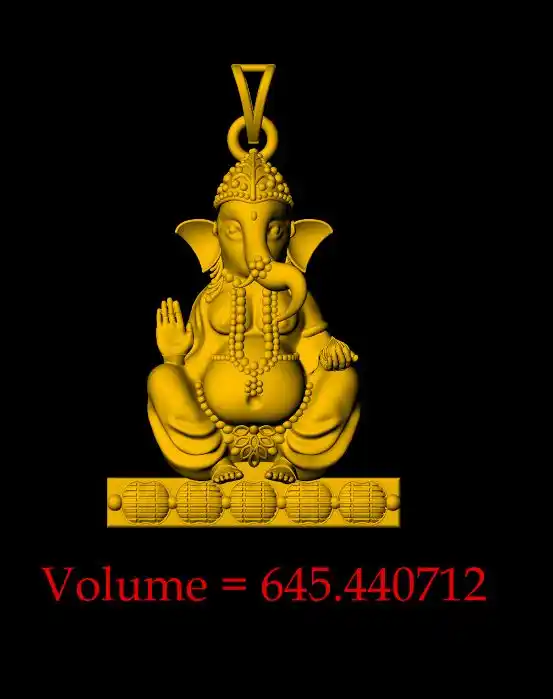 This is a jewelry 3d print file. For jewelry CAM and metal casting. It is ready for CAM and 3d printing. Model name is “Ganesh Pendant - 0086 “.