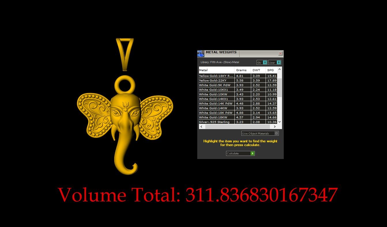 This is a jewelry 3dprint CAD file, STL file. For jewelry CAM and metal casting. Model name is ”Ganpati Pendant - 0045”. And this file is ready for any type of 3Dprinting.We have ”Ganpati Pendant - 0045” length 18-mm,width 21- mm and thickness 6 mm. This is a Indian God. Ganesha, also known as Ganesh or Ganapati,is one of the most widely worshipped deities in Hinduism Ganesha is easily recognized by his elephant head and large belly. We can use this model as a jewelry pendant, Necklace center piece, Earrings, Rings center piece, Showpiece or other purpose. You can find all details of the product and volume of the product in the image. You can easily calculate any metal weight by product volume. We have given STL, OBJ, 3DMSTL, file format in ZIP file. (After metal casting and filling, and before polishing please tell your pre cutter or stone setter or engraver to clean or deep fece area, cloth and other area of upper portion by jewelry-grain tool or grain bar or other tools for better finishing.) We give you (normal STL, and OBJ) file format in ZIP file.