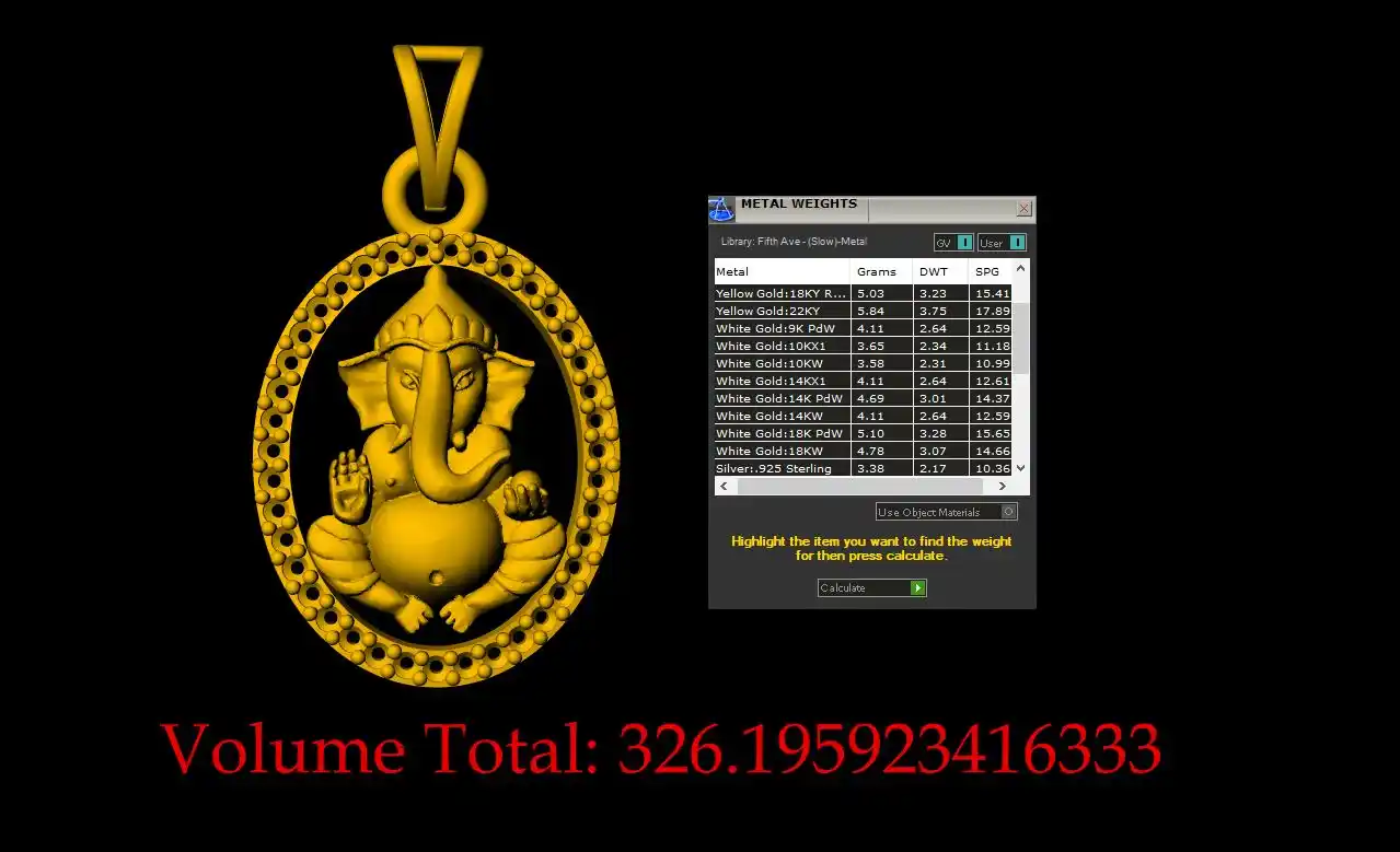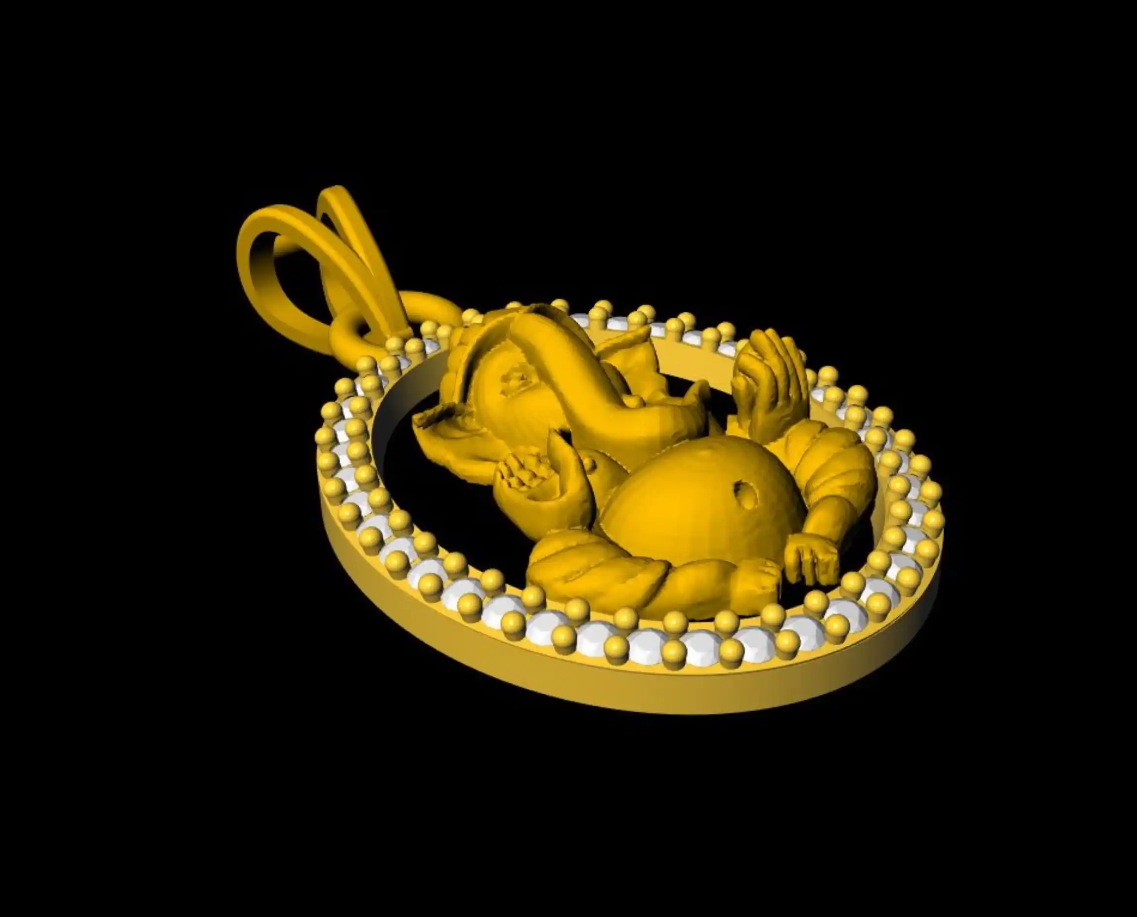 This is a jewelry 3d print file. For jewelry CAM and metal casting. It is ready for CAM and 3d printing. Model name is “Ganpati Pendant - 0084 “.