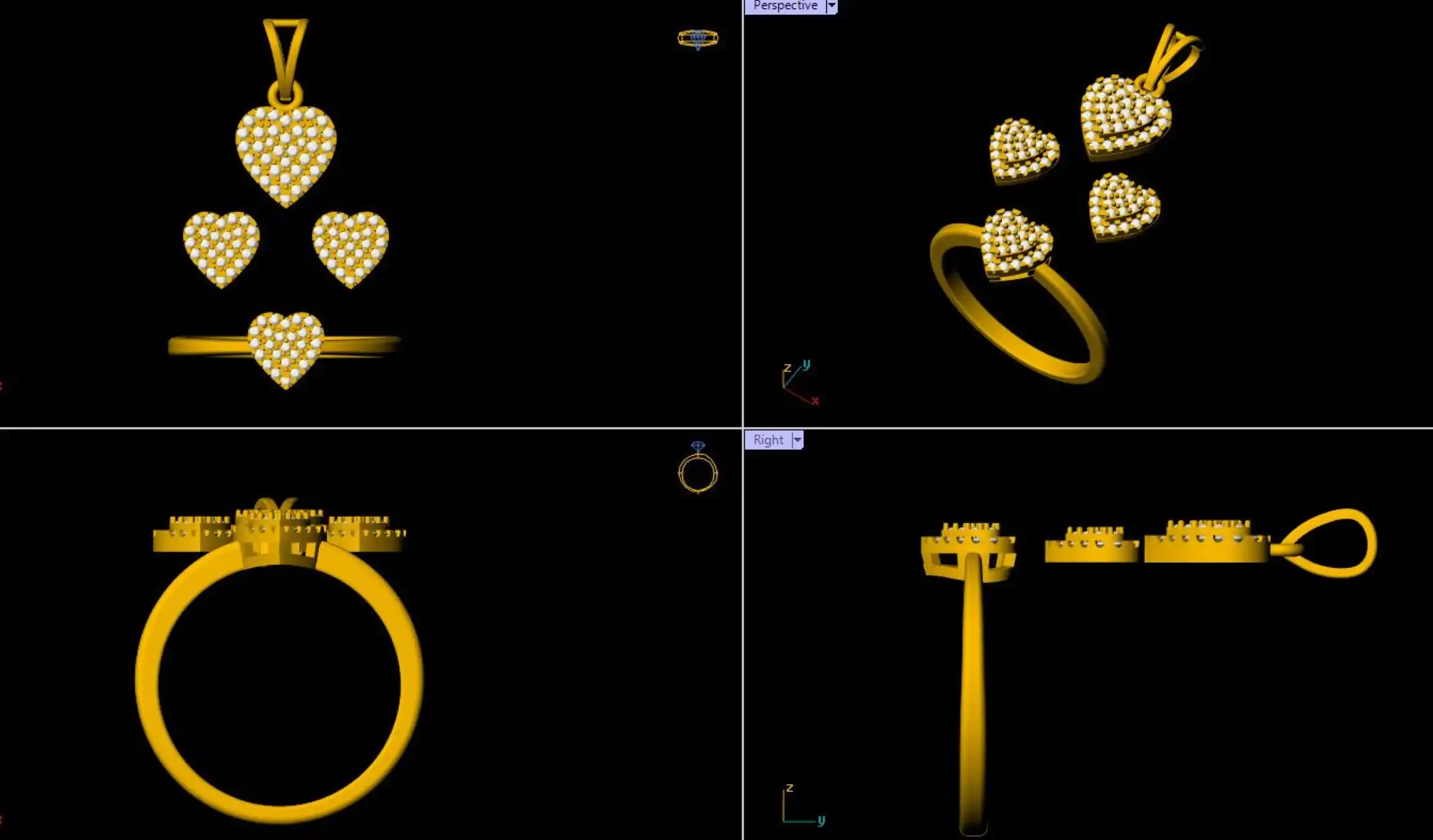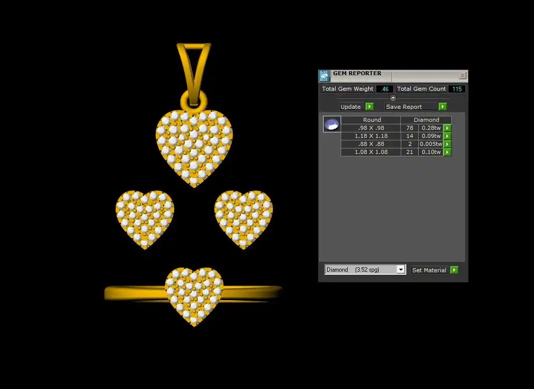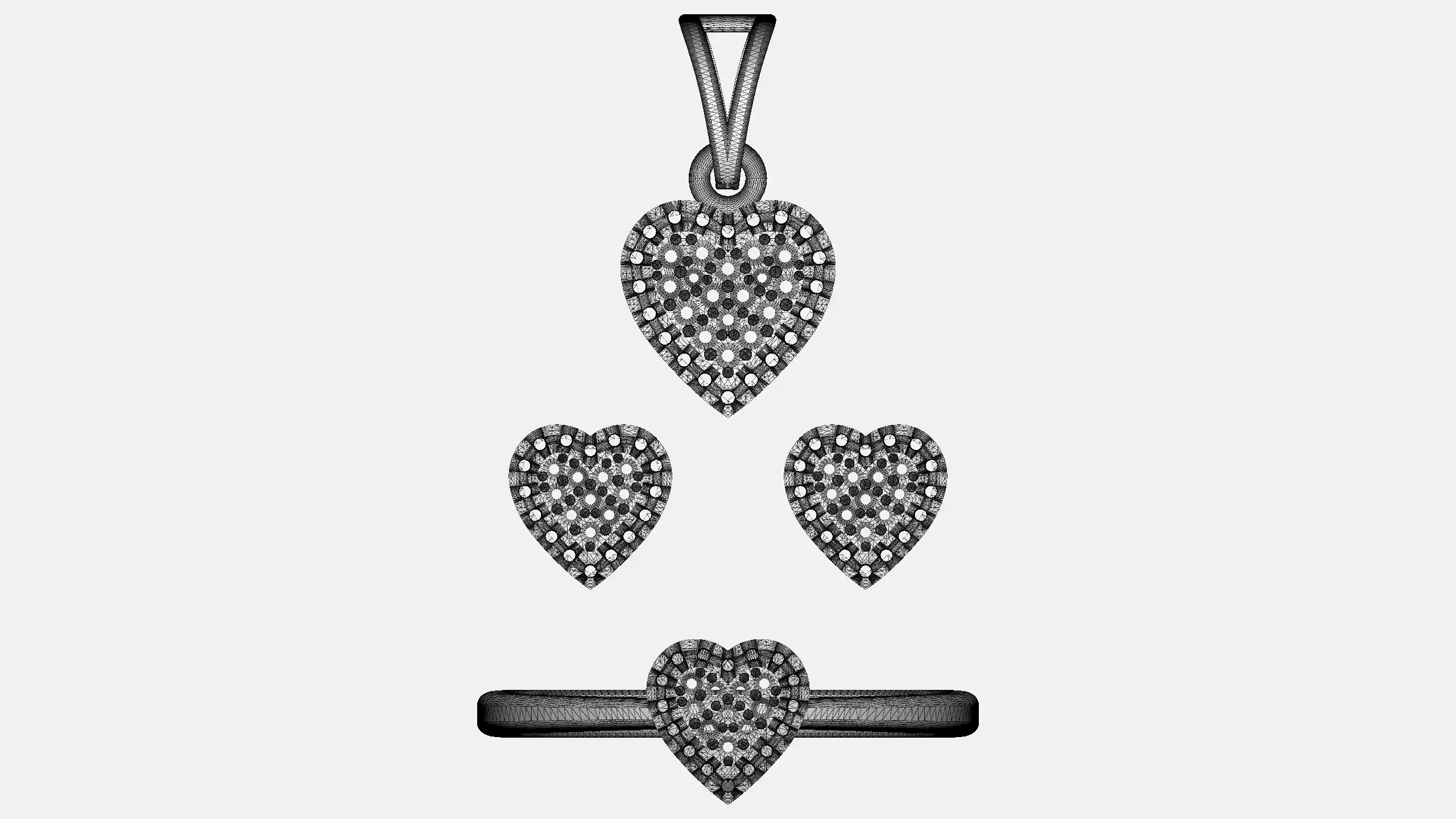 This is a jewelry 3d print file. For jewelry CAM and metal casting. It is ready for CAM and 3d printing. Model name is ”Heart Pendant Set - 0069”.