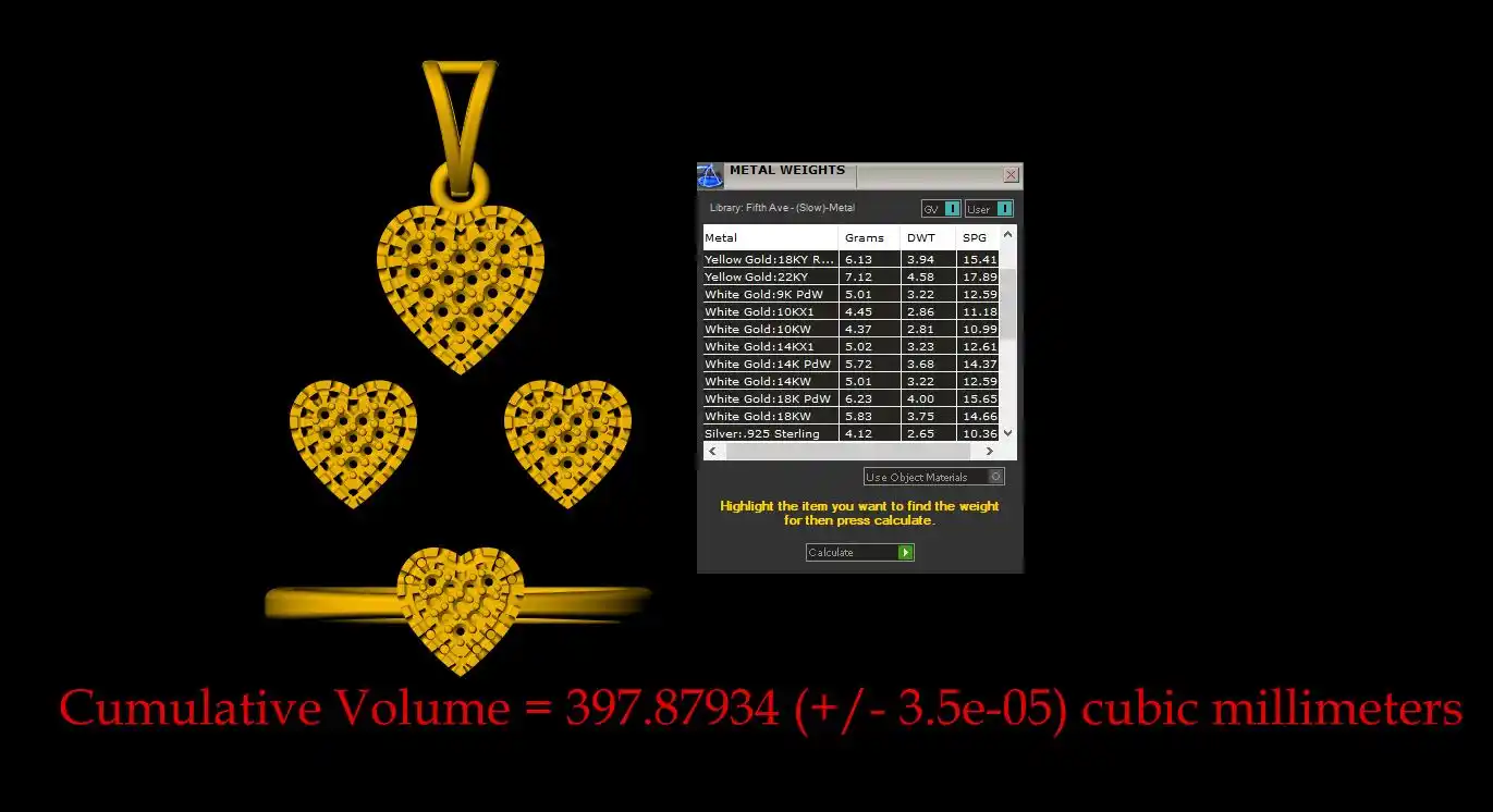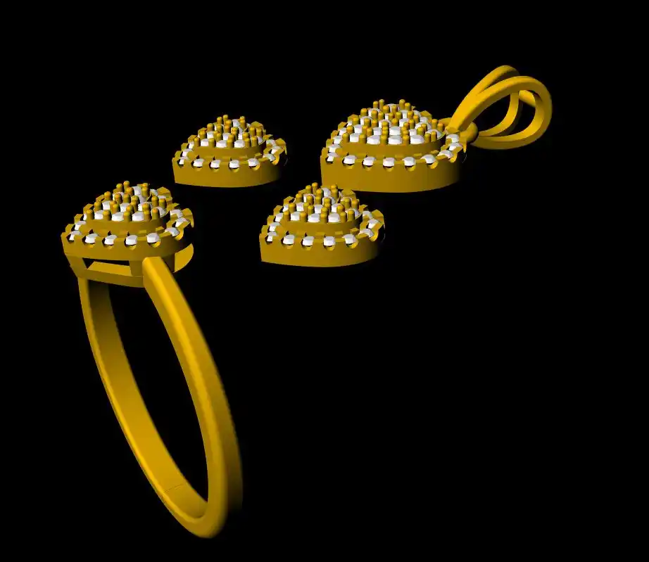 This is a jewelry 3d print file. For jewelry CAM and metal casting. It is ready for CAM and 3d printing. Model name is ”Heart Pendant Set - 0069”.We have “Heart Pendant Set - 0069” Earring length 16 mm, width 11mm, Pendant length 24 mm, width 18 mm, finger ring length 7mm pendant length 9 mm and ring length 7 mm .You can find all details of the product and volume of the product in the image. You can easily calculate any metal weight by product volume. We have given STL, OBJ, 3DMSTL, file format in ZIP file. (After metal casting and filling, and before polishing please tell your pre cutter or stone setter or engraver to clean or deep fece area, cloth and other area of upper portion by jewelry-grain tool or grain bar or other tools for better finishing).We give you (normal STL, and OBJ) file format in zip file.