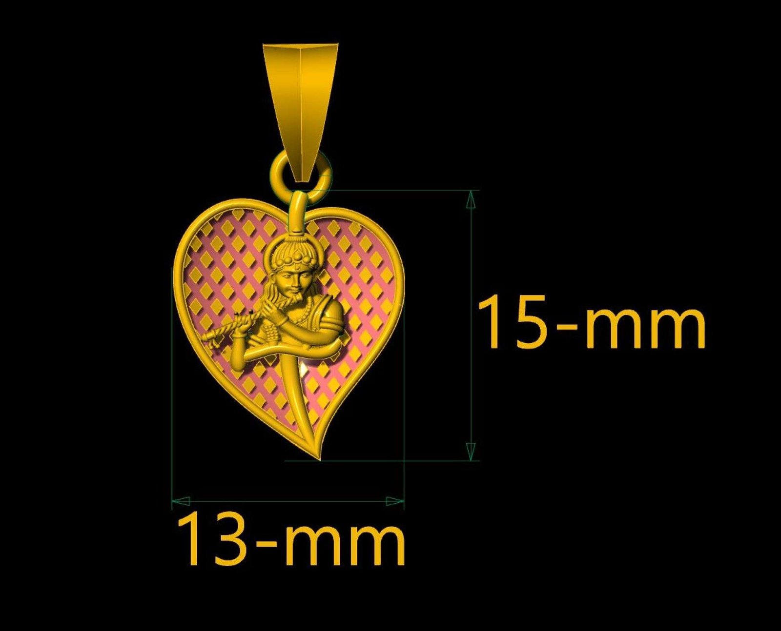 This is a jewelry Krishna Heart Pendant - 004 3D print file. For jewellery CAM and casting. And this file is ready for any type of 3Dprinting. Model name is ” Krishna Heart Pendant-004".
