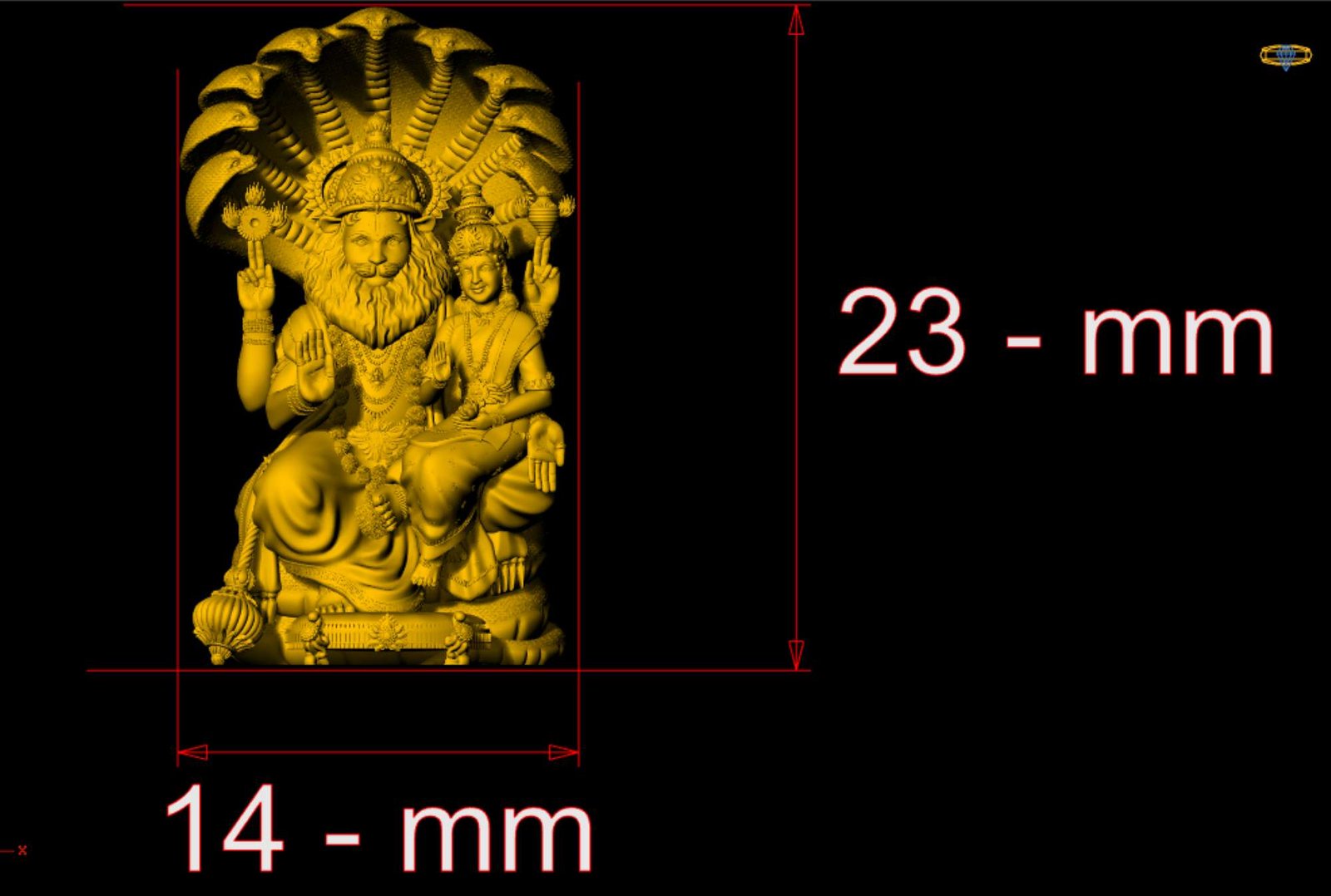 This is a jewelry 3d print file. For jewelry CAM and metal casting. It is ready for CAM and 3d printing. Model name is “Lakshmi Narasimha Swamy 3d File - 0020”.