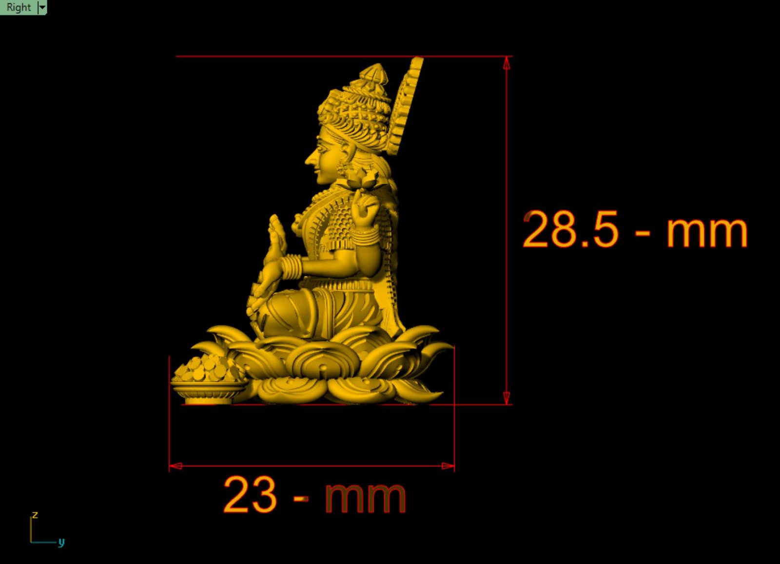 This is a jewelry 3d print file. For jewelry CAM and metal casting. Model name is ” Laxmi Murti - 0013”.