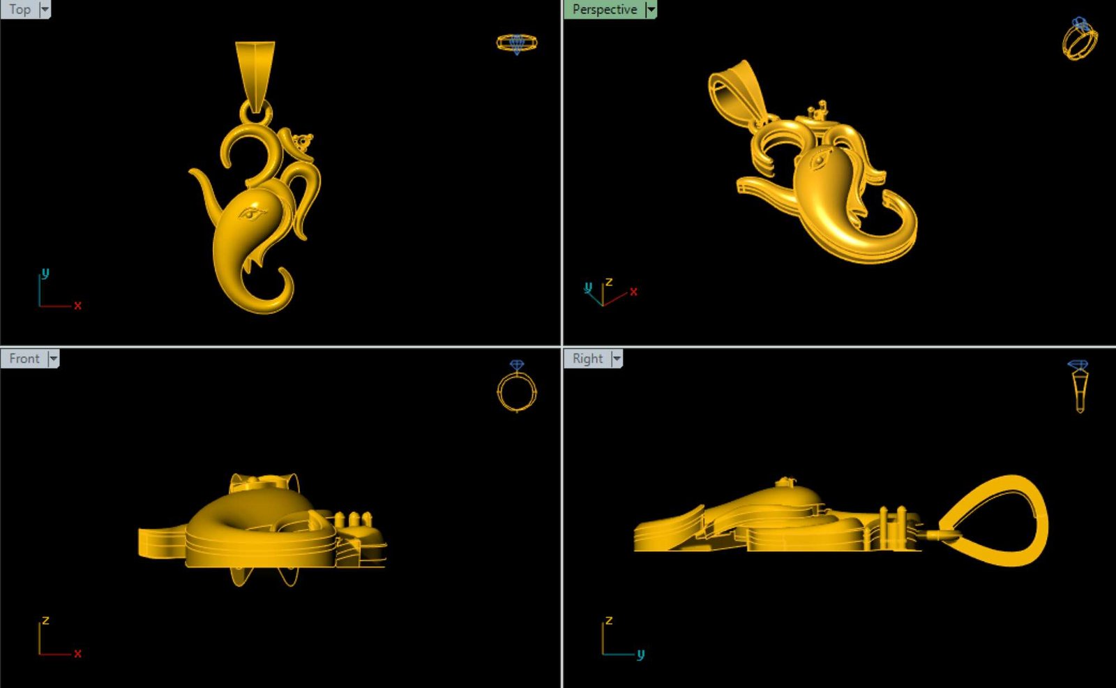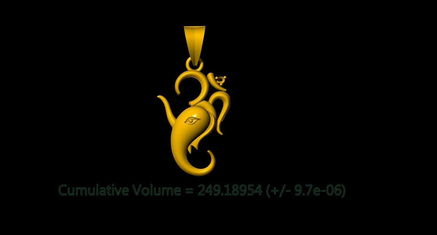 This is a jewelry 3dprint CAD file,STL file. For jewelry CAM and metal casting. Model name is :- ” Om Ganesh Pendant-002 ”.