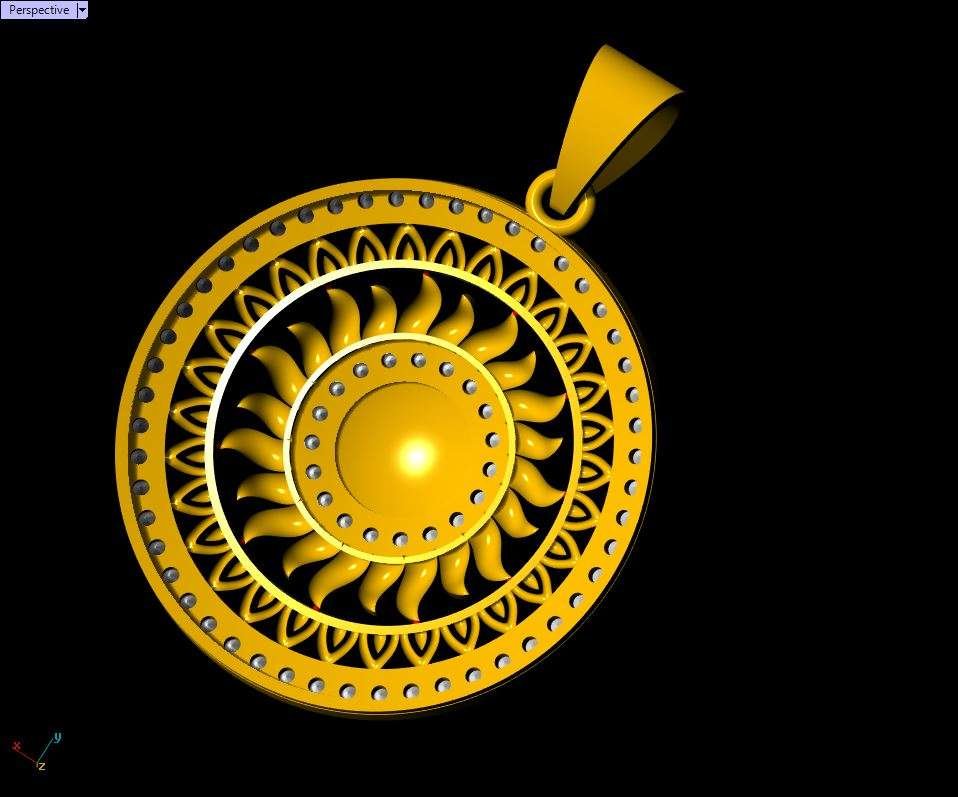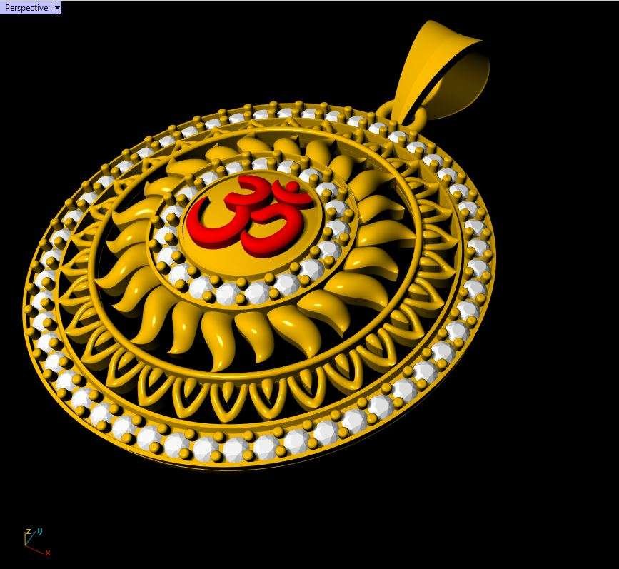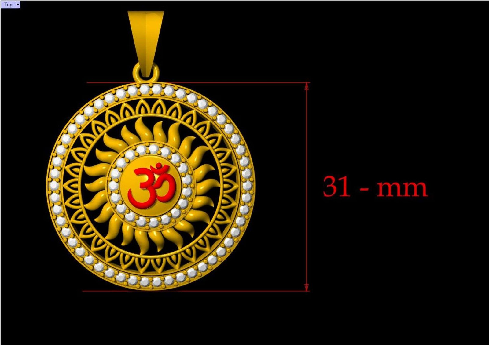 This is a jewelry 3dprint CAD file, STL file. For jewelry CAM and metal casting. Model name is ”Om Sun Pendant - 0036”. And this file is ready for any type of 3Dprinting.