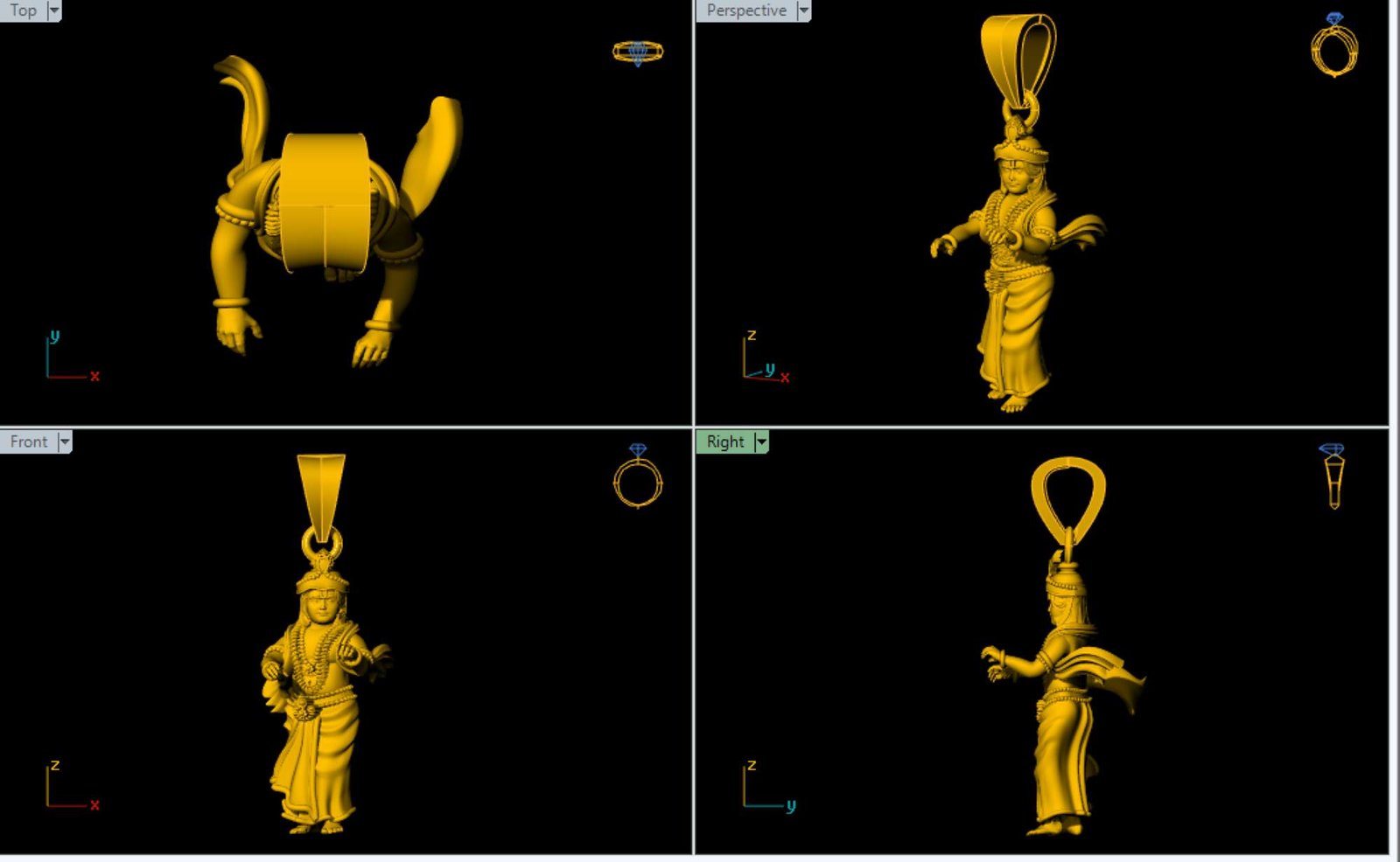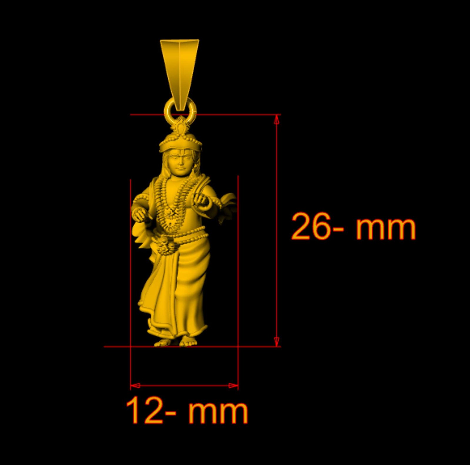 This is a jewelry 3dprint CAD file, STL file. For jewellery CAM and casting. And this file is ready for any type of 3Dprinting. This is Indian God call 'Rama'. Model name is ” Ram 3dm File - 0024".We have ” Ram 3dm File - 0024" length 26- mm and width 12-mm. Rama is a principal deity in Hinduism, worshipped as the seventh avatar of the god Vishnu. He is the central hero of the epic Ramayana, and is revered as the ideal man, embodying virtues like truth, righteousness, and duty. We can use this model as a Jewelry Pendant, Necklace center piece, Earrings, Rings center piece, Showpiece or other purpose .This ”Ram 3dm File – 0024” is ready for jewelry CAM and any type of 3D-printing. You can find all details of the product and volume of the product in the image. You can easily calculate any metal weight by product volume. We have given STL, OBJ, 3DMSTL, file format in ZIP file. ( After metal casting and filling, and before polishing please tell your precutter or stone setter or engraver to clean or deep fece area, cloth and other area of upper portion by jewelry-graintool or grainbar or other tools for better finishing).I give you (STL, 3DMSTL and OBJ) file format in ZIP file.