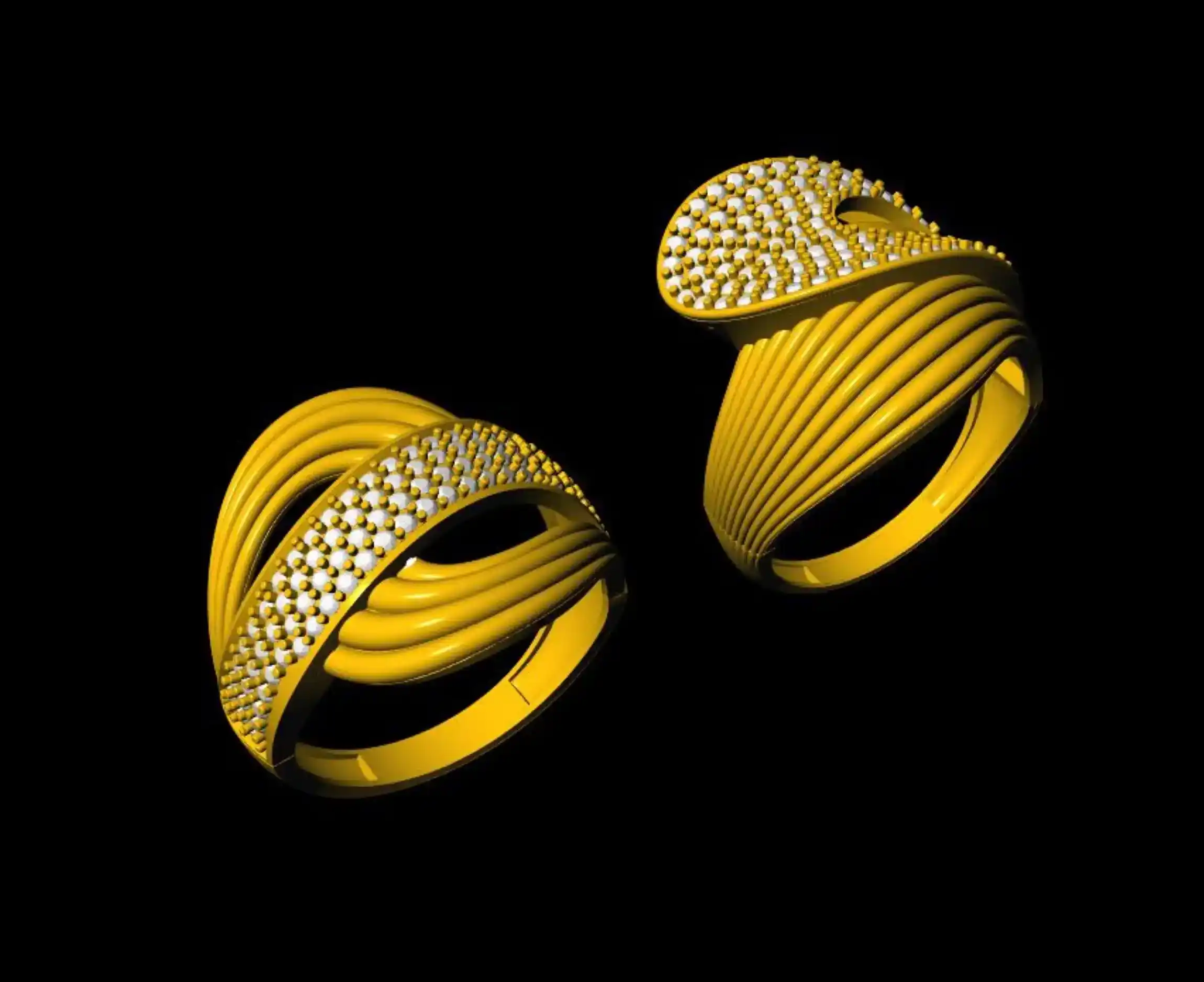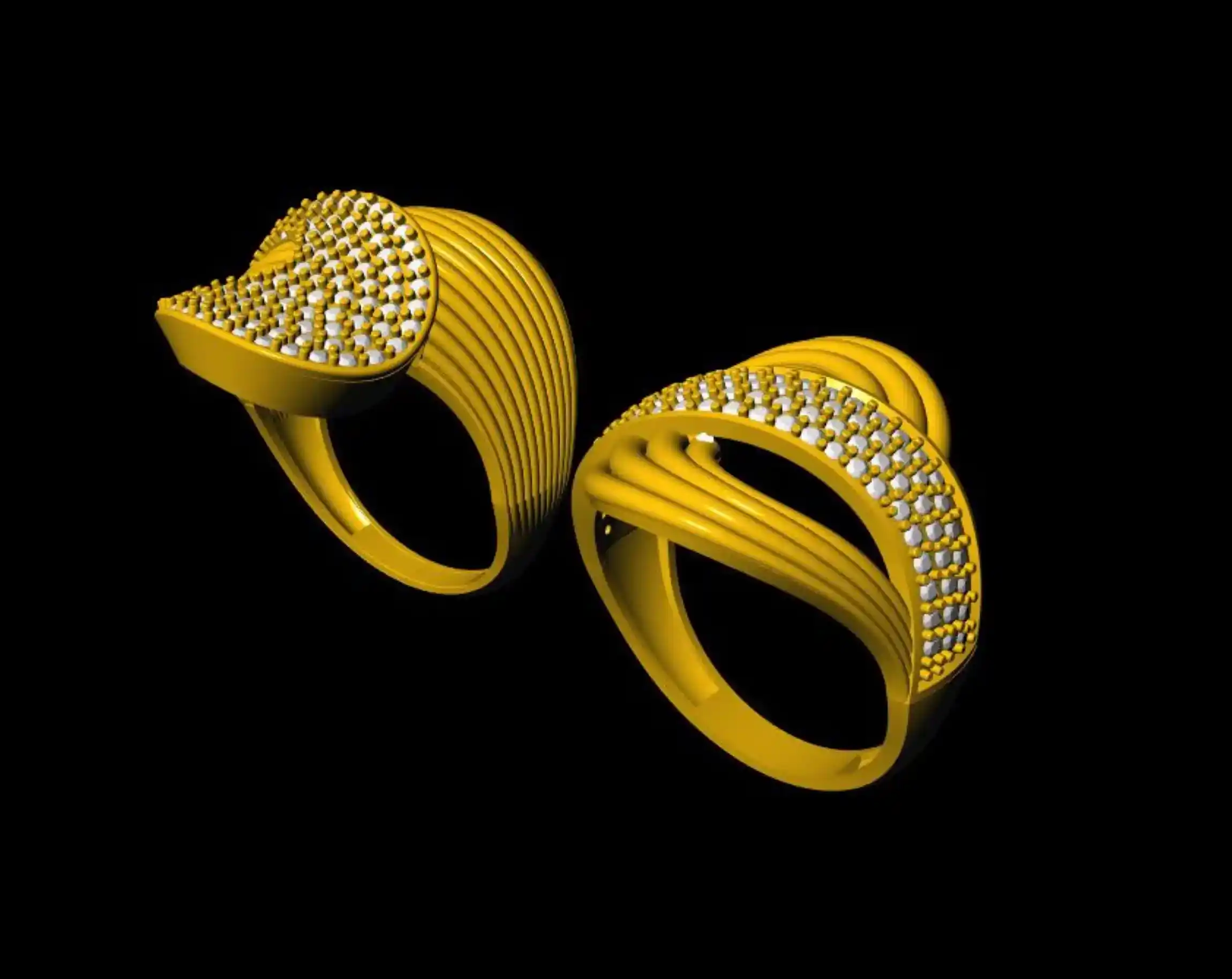 This is a jewelry 3d print file. For jewelry CAM and metal casting. It is ready for CAM and 3d printing. Model name is ”Unique Diamond Ring – 0028“.This 3d file has two rings.